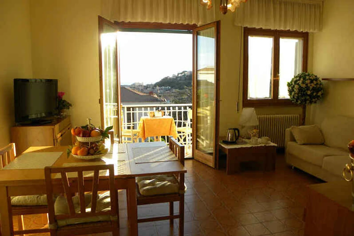 Pietra Ligure. Die Ferienwohnung befindet sich in einer Ferienanlage. Die Residenz befindet sich am Fusse eines Hügels in einer panoramischen Wohngegend, die nach Süden ausgerichtet ist und sich in das Grün der ligurischen Landschaft zwischen Obstgärten und Olivenbäumen vertieft.