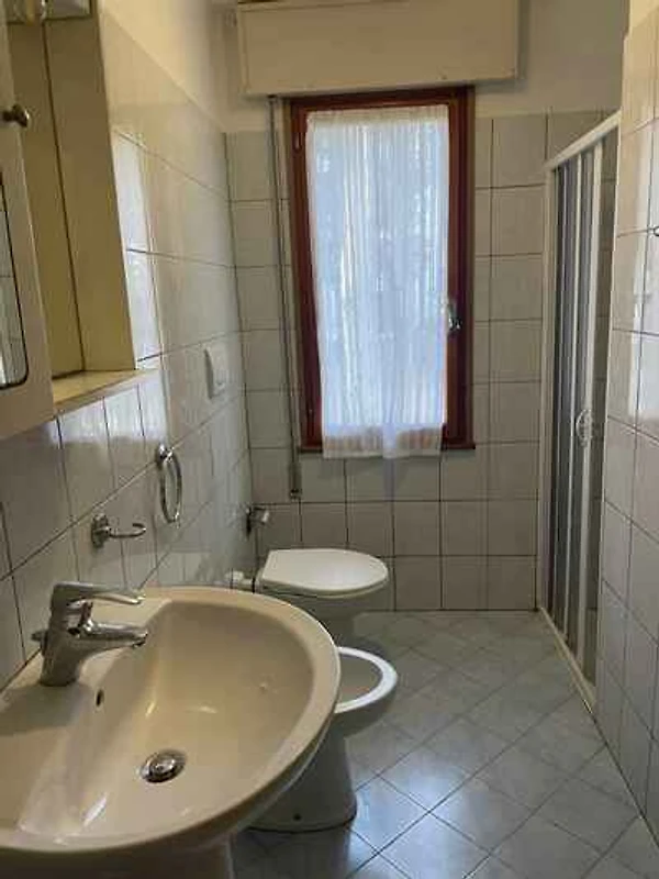 Rosolina Mare. Die Ferienwohnung befindet sich auf einem Gartengrundstück. Parkplatz (für 1 Pkw) auf dem Grundstück.