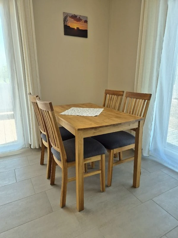 Auf der Terrasse des Ferienhauses können Sie mit Blick in die unberührte Natur entspannen: morgens die Rehe oder Hasen auf der Wiese beobachten oder abends den Sonnenuntergang über dem Wald geniessen. Ein grosser Garten mit Grillplatz liegt direkt vor Ihrer Terrasse und bietet weitere Möglichkeiten für Erholung und Entspannung.