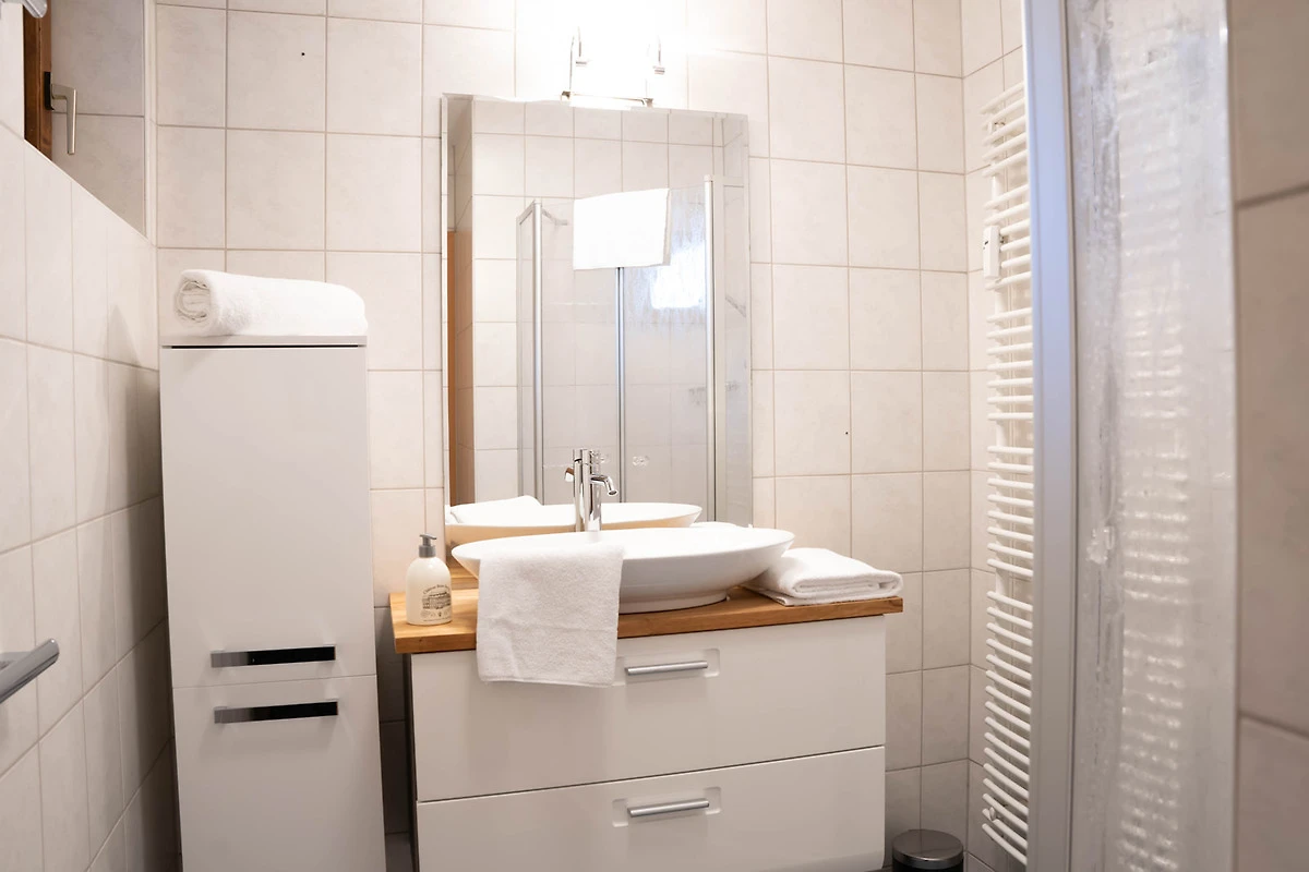Das Badezimmer ist mit einer Dusche und allen notwendigen Annehmlichkeiten ausgestattet. Hier können Sie sich nach einem ereignisreichen Tag erfrischen und entspannen.