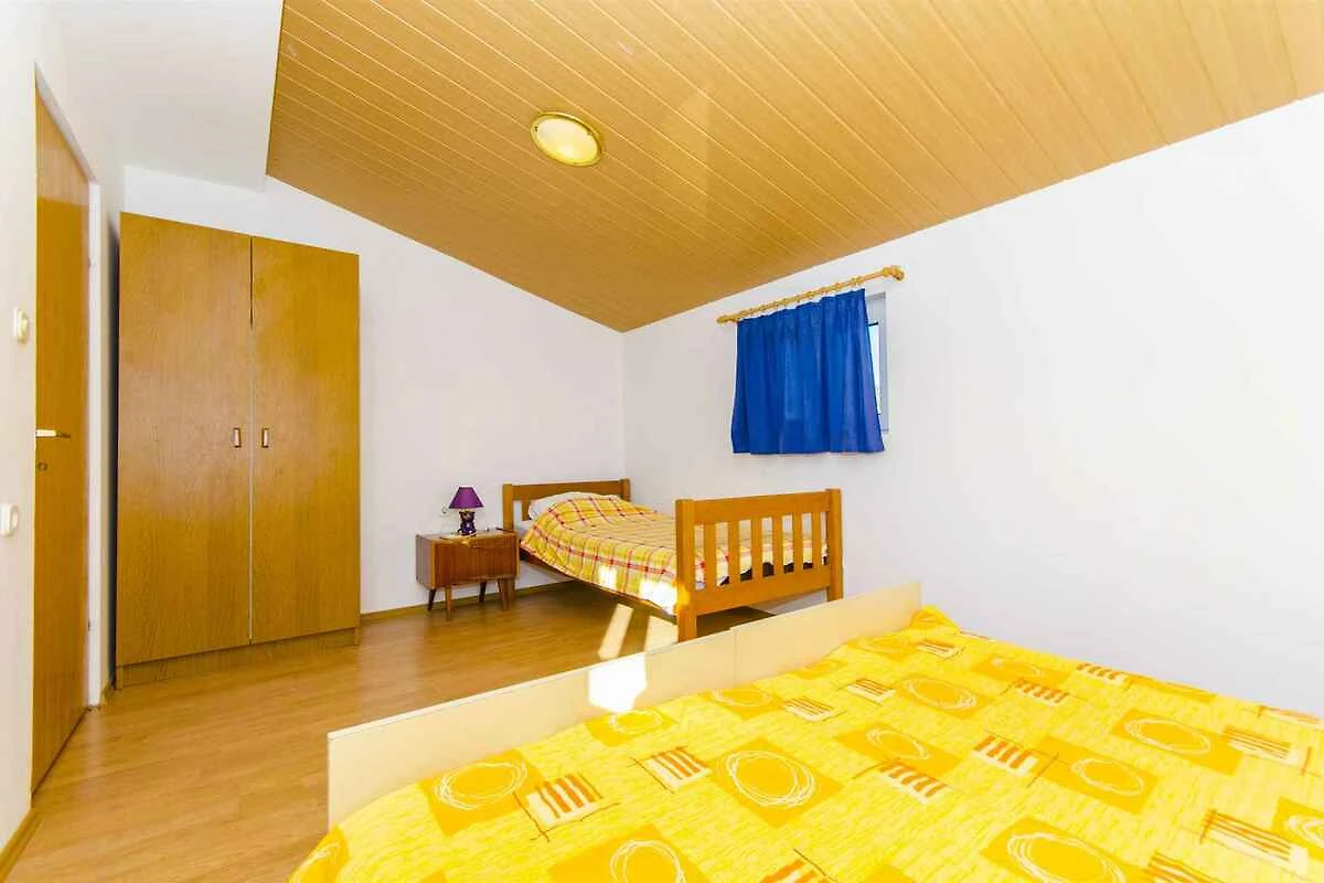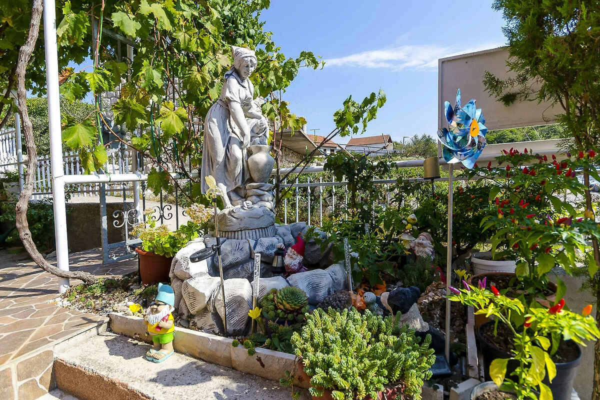 Rogoznica. Die Ferienwohnung befindet sich auf einem geschlossenen Gartengrundstück mit Blumen und Sträuchern, von einem Zaun, einer Hecke und einer Mauer begrenzt. Der Vermieter wohnt im Haus. Parkplatz auf der Strasse vor dem Haus.