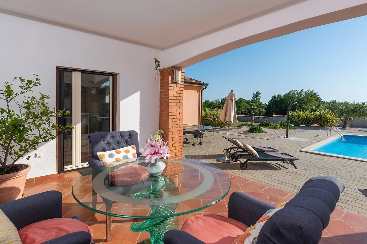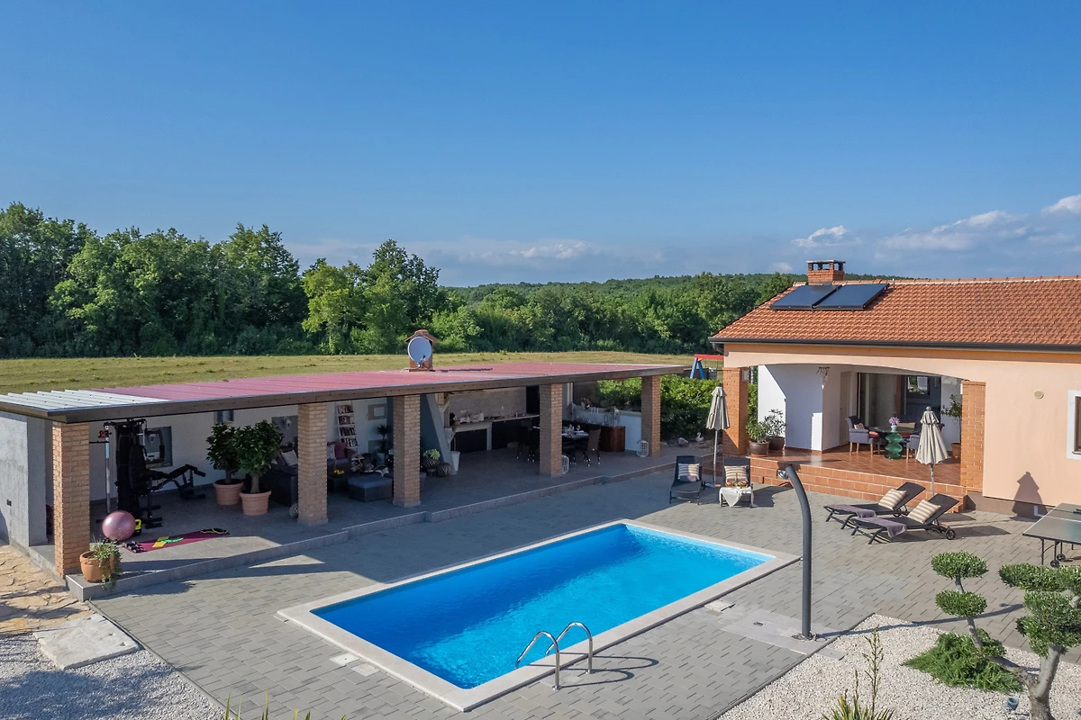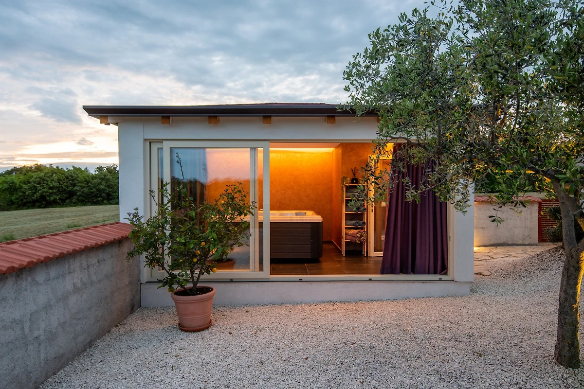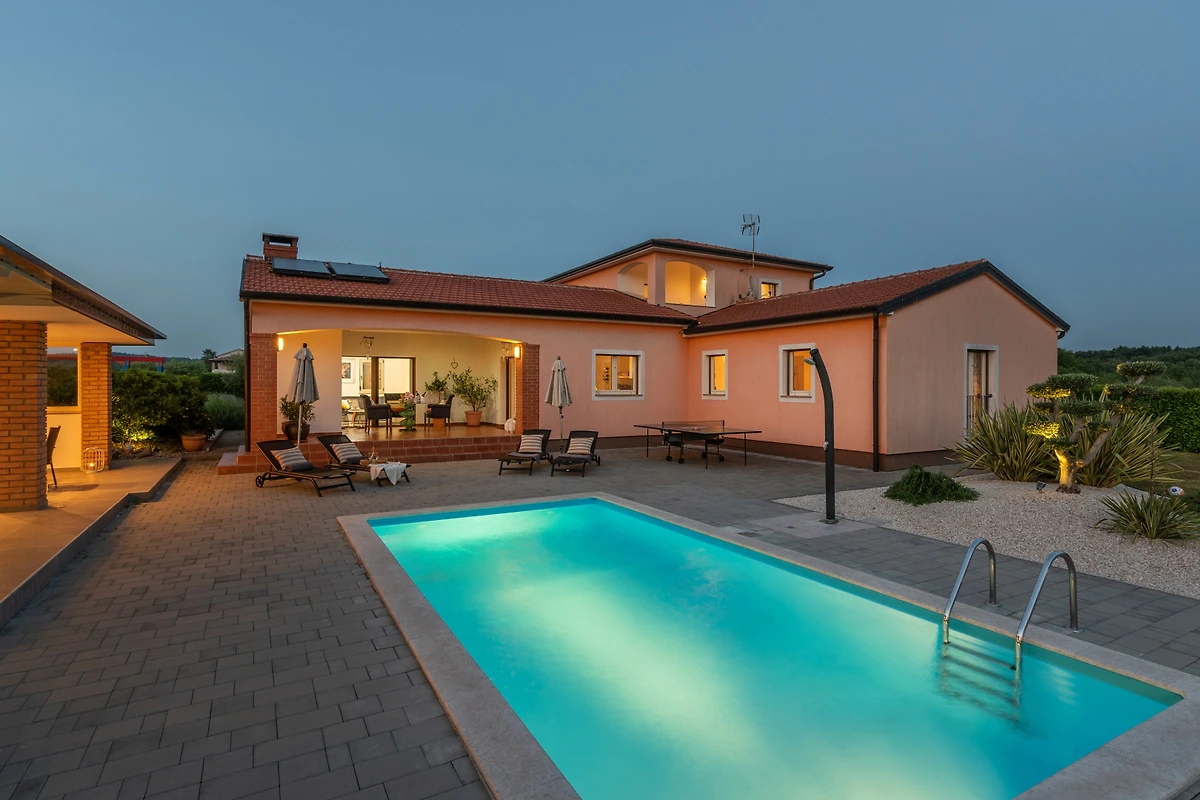 Die Villa Sv. Anna befindet sich im Dorf Radetići, im Inneren von Istrien. Diese moderne Villa hat alles, was Sie für einen angenehmen Aufenthalt mit Freunden oder Familie brauchen. Ein Aussenpool, ein grosser Garten und ein wunderbarer Aussenbereich für geselliges Beisammensein sind die wichtigsten Vorzüge, und da sie sich in einer abgelegenen Gegend befindet, bietet sie Ihnen ein Maximum an Privatsphäre. Die Villa verfügt über 4 Schlafzimmer und 2 Bäder und kann bis zu 8 Personen beherbergen.
