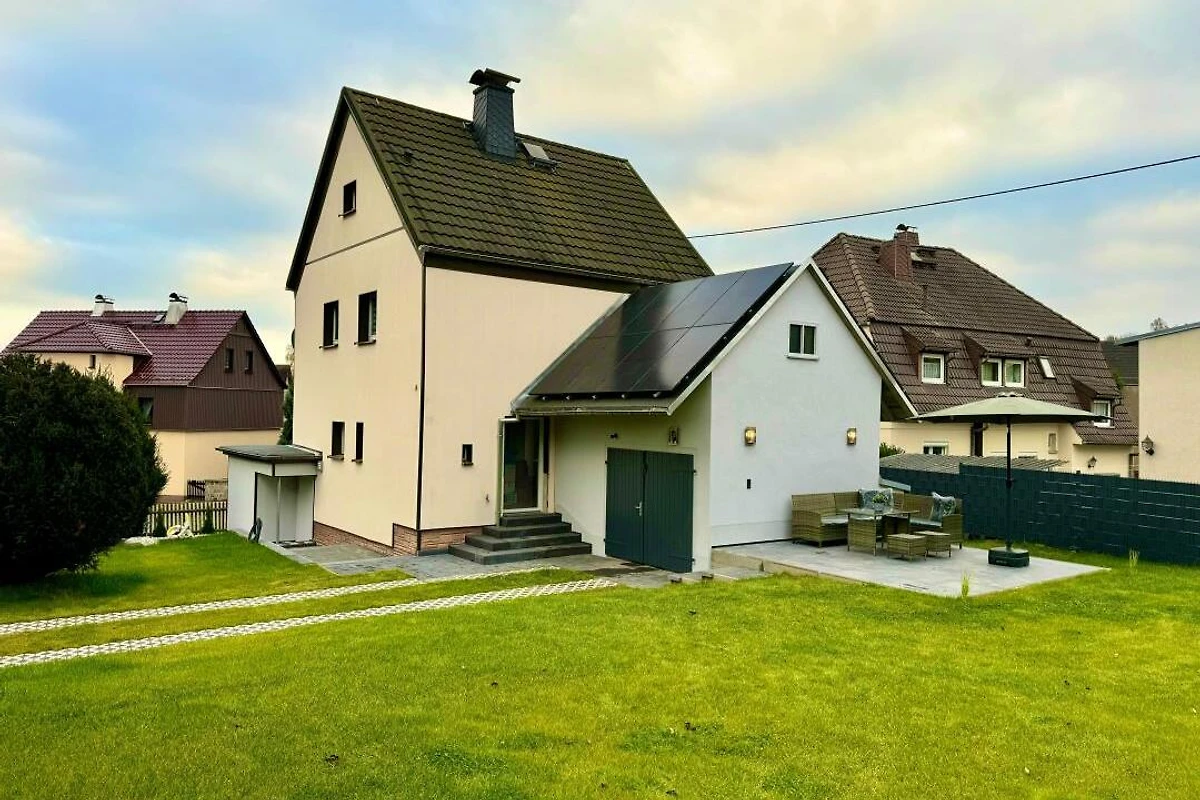 NEU Ferienhaus am Sonnenlandpark Haus Anja komplett neu renoviert mit Klimaanlage, Terrasse, PKW-Stellplatz und grossem Garten! Herzlich Willkommen in Lichtenau, direkt neben Chemnitz, der Kulturhauptstadt Europas 2025. Unser neues zentral gelegenes Ferienhaus, nahe des Sonnenlandparkes, bietet Ihnen Platz für bis zu 5 Personen + Babybett. In der 1. Etage befindet sich ein offener Küchen-/Wohnbereich mit Kamin und Klimaanlage, ebenso Zugang zum grossen Garten mit möblierter Terrasse und Grill. Eine Lagerfeuerstelle lädt für gemütliche Marshmallow-Abende ein. Sie finden eine moderne, voll ausgestattete Küche vor. Ein Babybett/Babybadewanne/Töpfchen/Hochstuhl stellen wir Ihnen gerne zur Verfügung. In den Schlafzimmern (obere Etage) sind Verdunklungsvorhänge und eine Klimaanlage vorhanden. Ebenfalls in der oberen Etage befindet sich das grosse moderne Badezimmer. Der Parkplatz befindet sich direkt in der Einfahrt zum Ferienhaus. Fahrräder und einen Bollerwagen, mit denen Sie z. B. zum Sonnenlandpark auch zu Fuss gehen können, stehen kostenfrei zur Verfügung. (ausser Elektrofahrräder: 10 €/Tag/Stk.) Kostenfreies WLAN ist im Haus und Garten verfügbar. Bettwäsche und Handtücher sind im Preis inbegriffen.