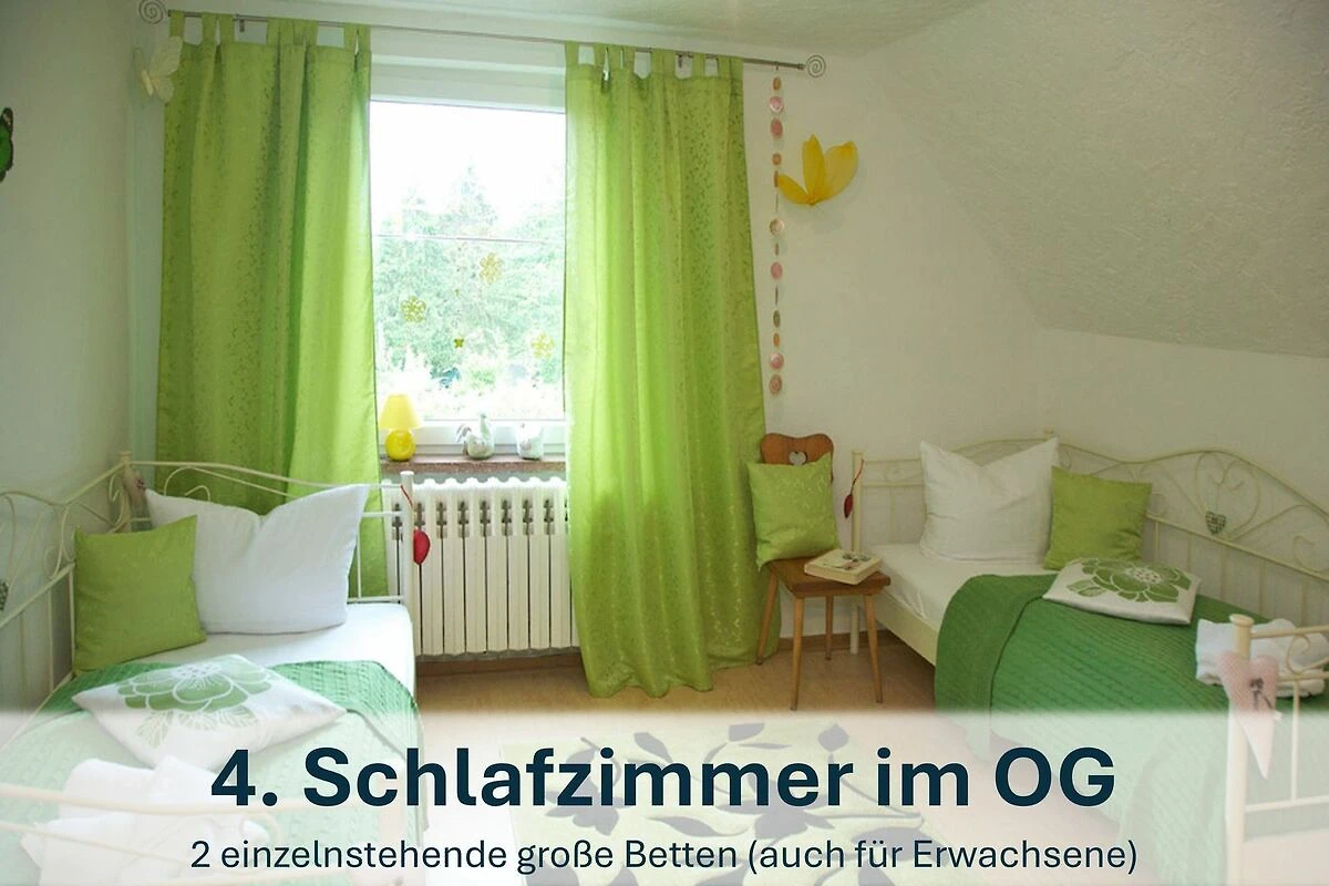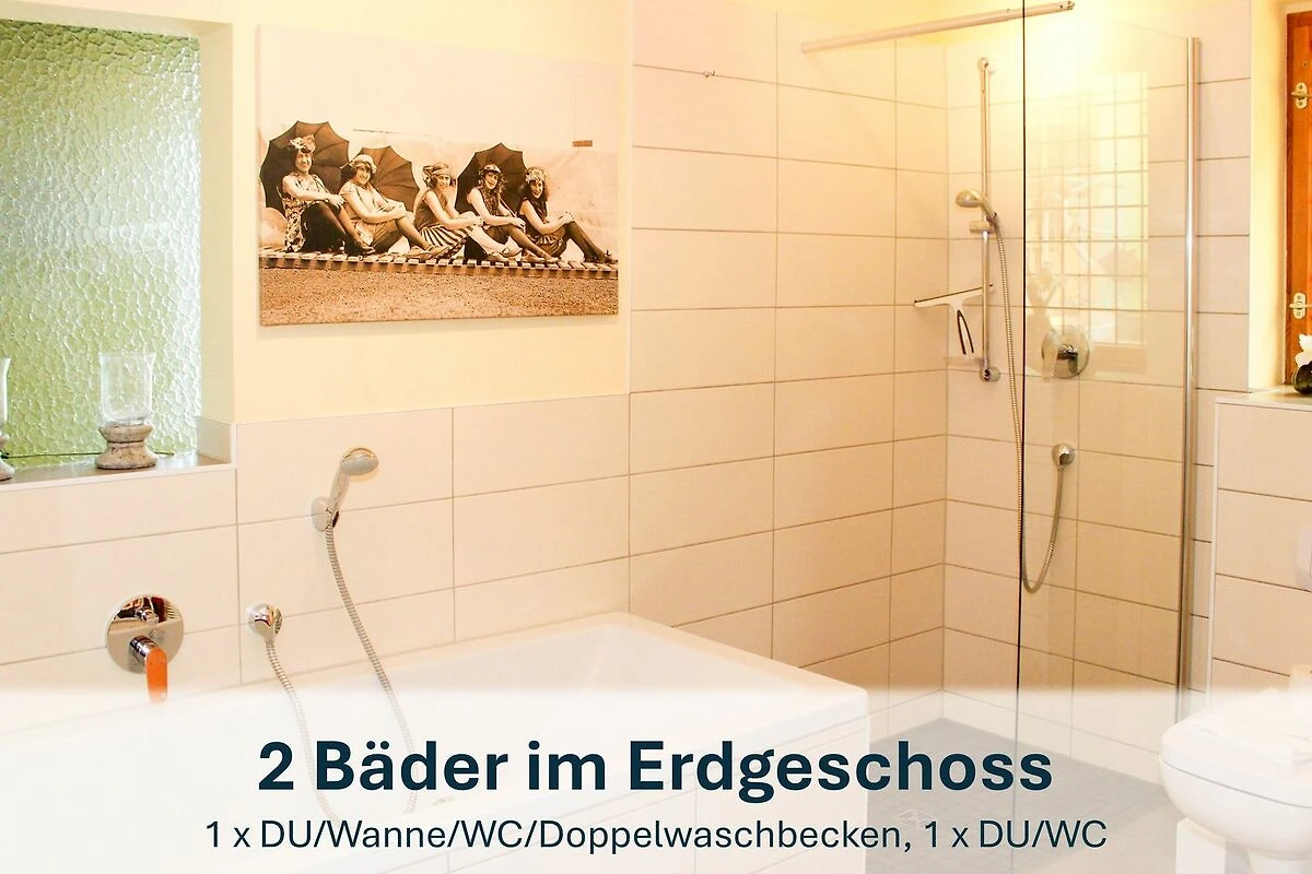 Unser grosszügiges Ferienhaus in Heringsdorf ist ideal für grosse Familien oder Gruppen. Es bietet zwei Etagen mit insgesamt vier Schlafzimmern, mehreren Bädern sowie einem einladenden Wohn-/Kaminbereich.