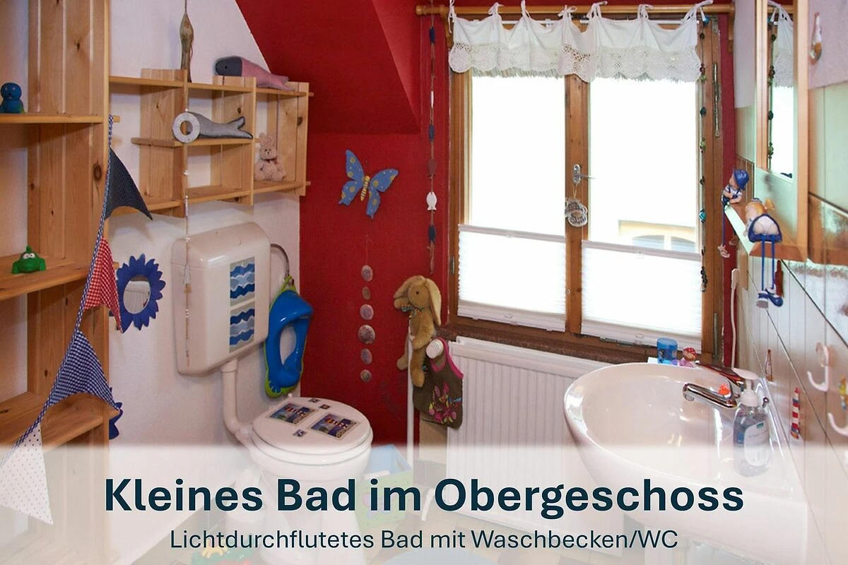 - Kinderbad mit WC, Waschbecken & Tritthocker.