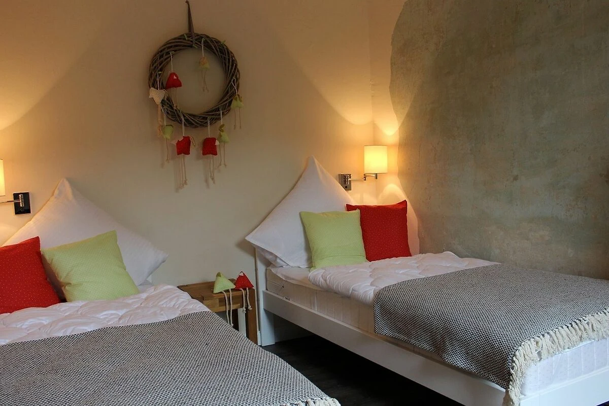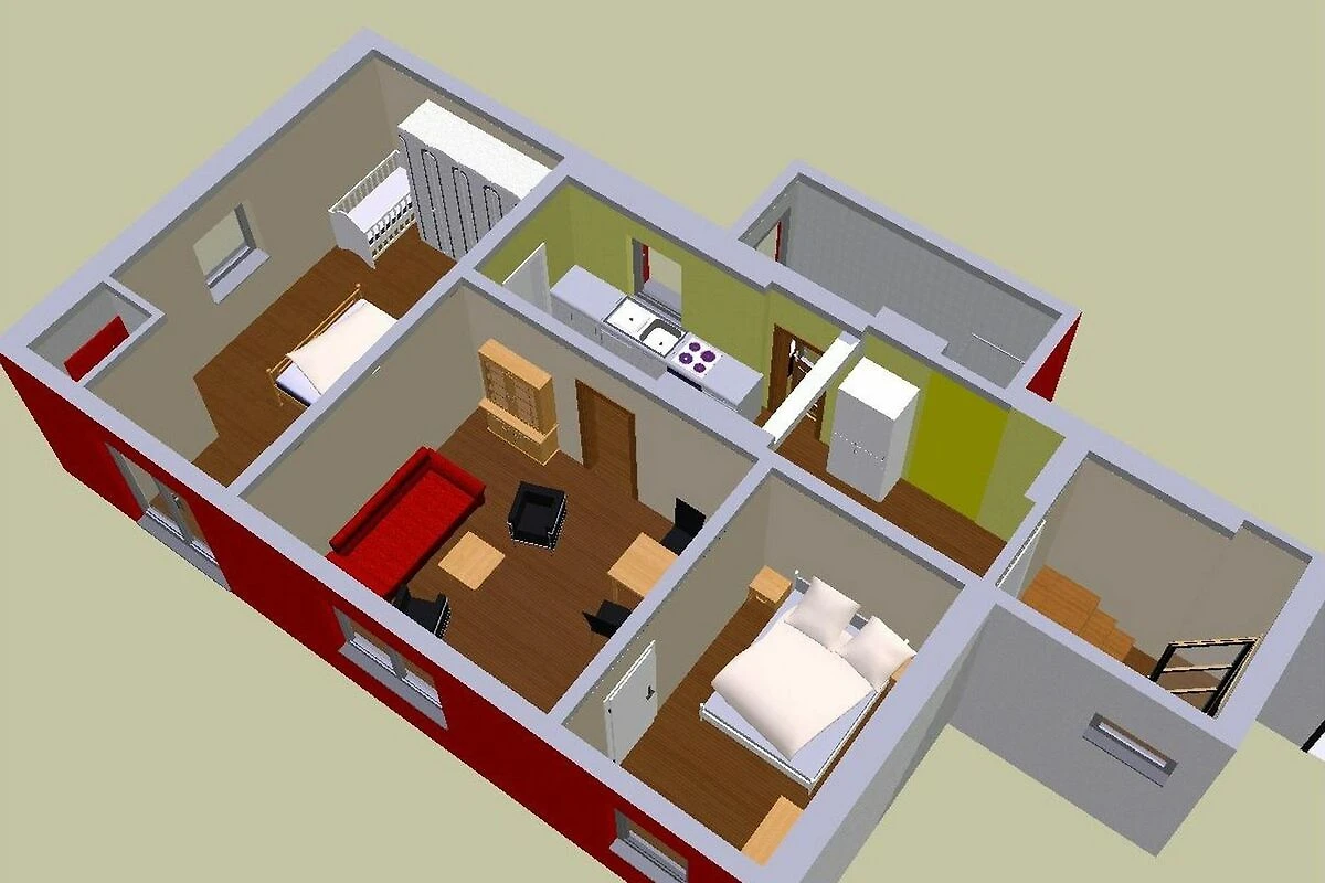 In unserer modern ausgestatteten 3-Raum-Wohnung erwarten Sie zwei separate Schlafzimmer (1×Doppelbett, 1×zwei Einzelbetten) sowie ein gemütlicher Wohn-/Essbereich mit Schlafcouch für eine weitere Person.