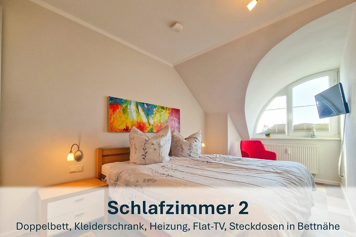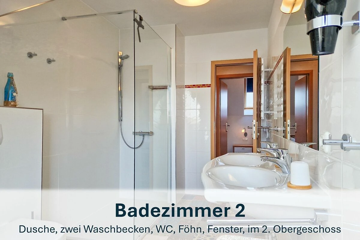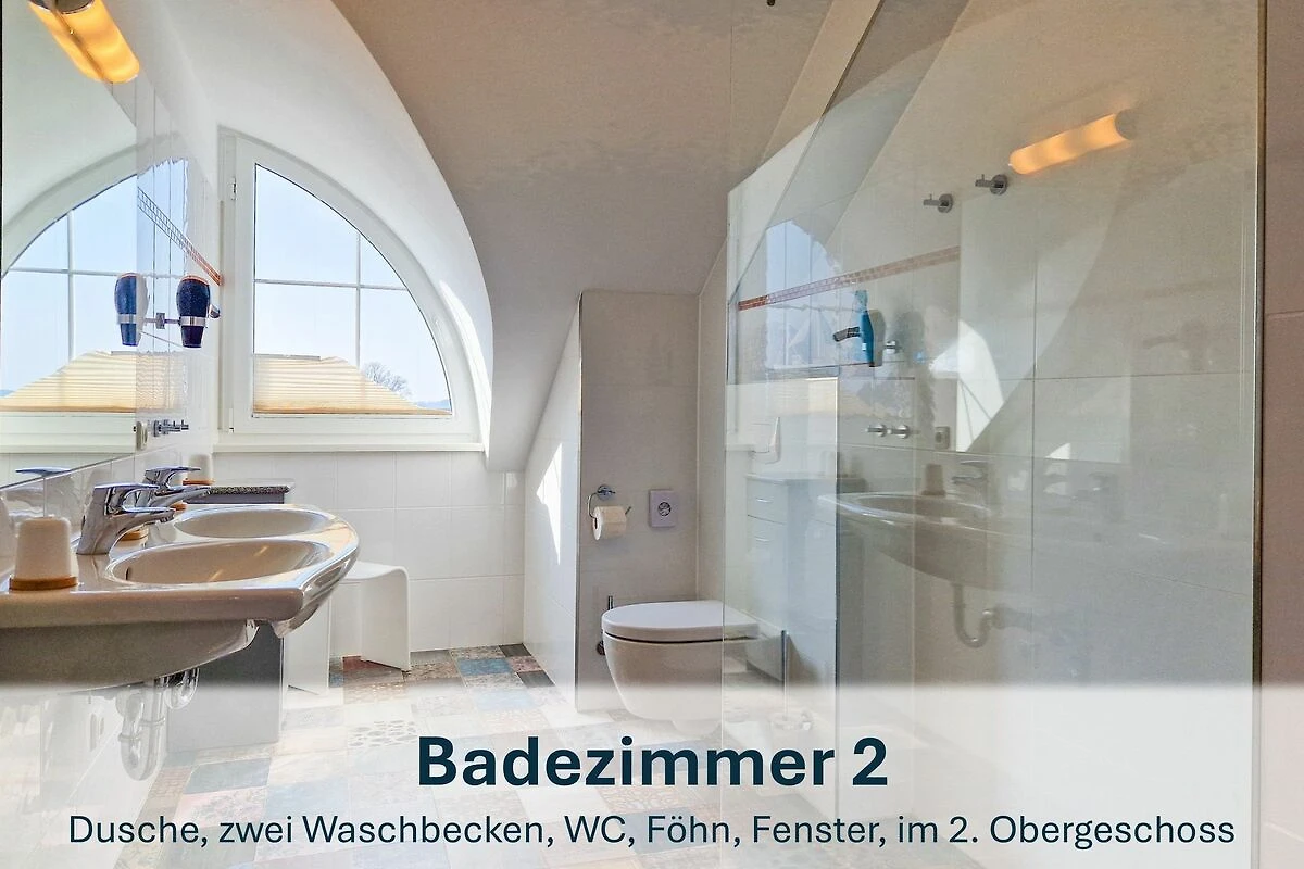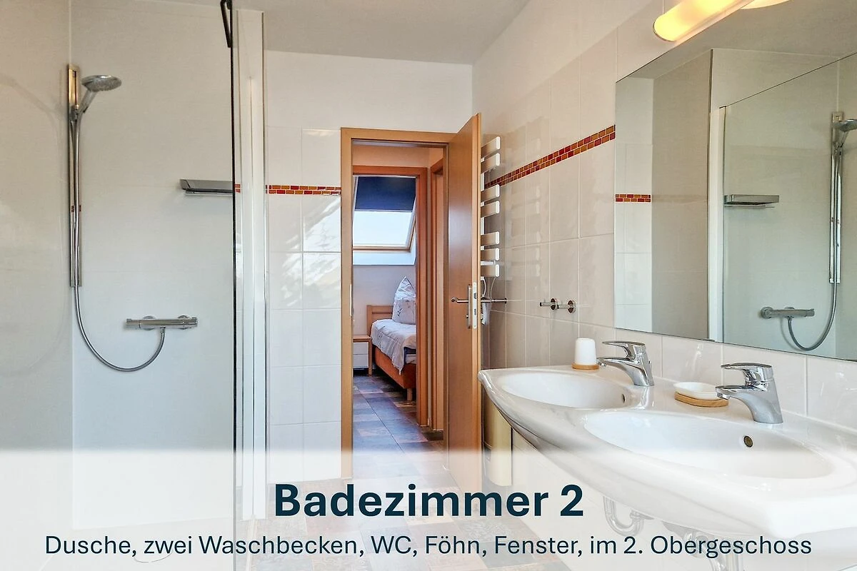 In der 2. Etage, mit charmanten Dachschrägen, finden Sie zwei wunderschöne Doppelzimmer, beide mit Sat-TV, sowie ein weiteres grosses Bad/WC - perfekt für Erholung und Komfort.