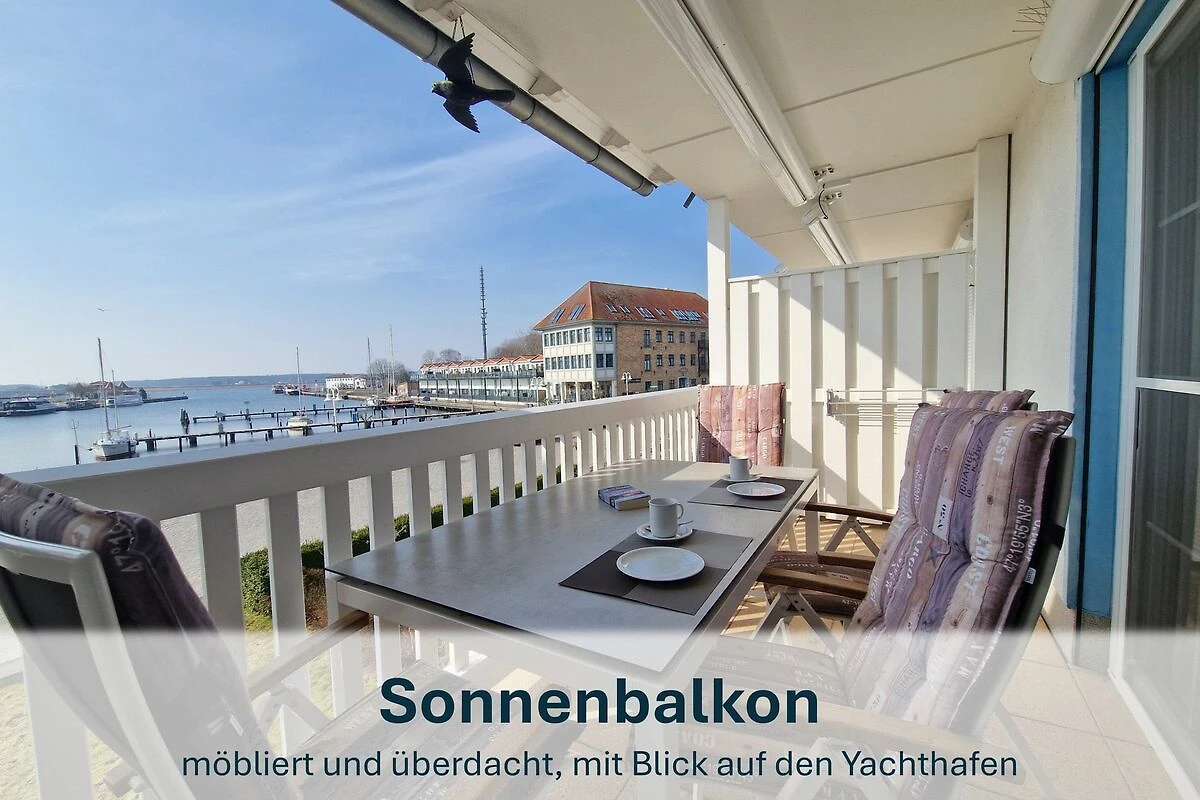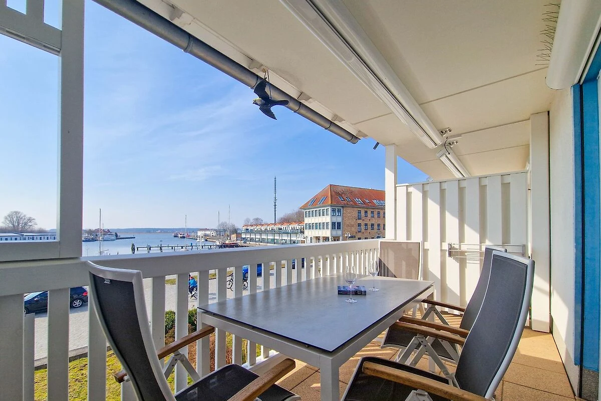 Die Wohnung besticht durch ihre hochwertige und geschmackvolle Einrichtung sowie eine Zentralheizung, die für Wohlfühltemperaturen sorgt. Der überdachte Balkon mit bequemen Sitzmöbeln ist der ideale Ort, um den Blick auf den Hafen zu geniessen und den Tag ausklingen zu lassen.