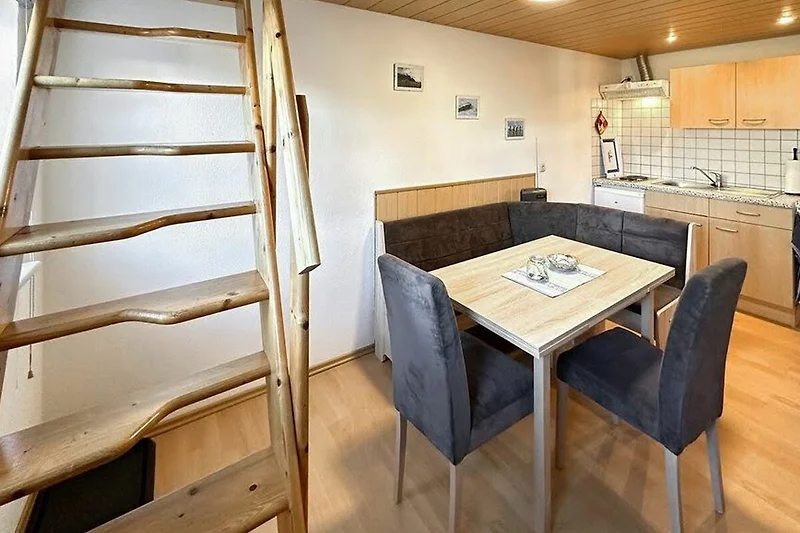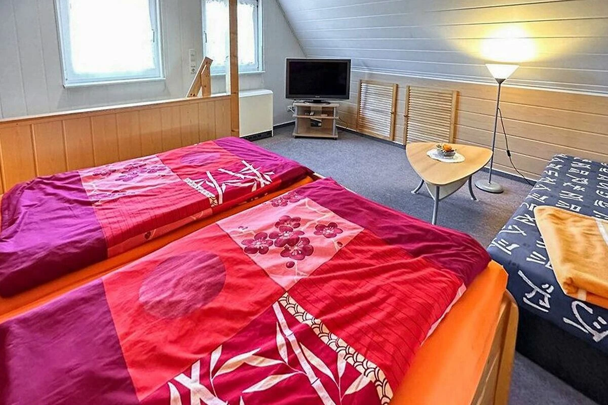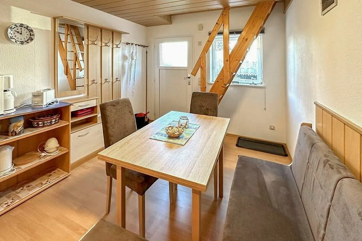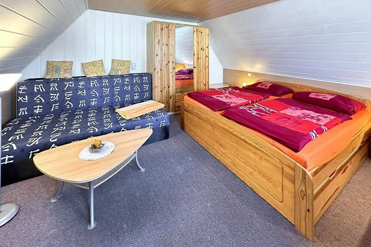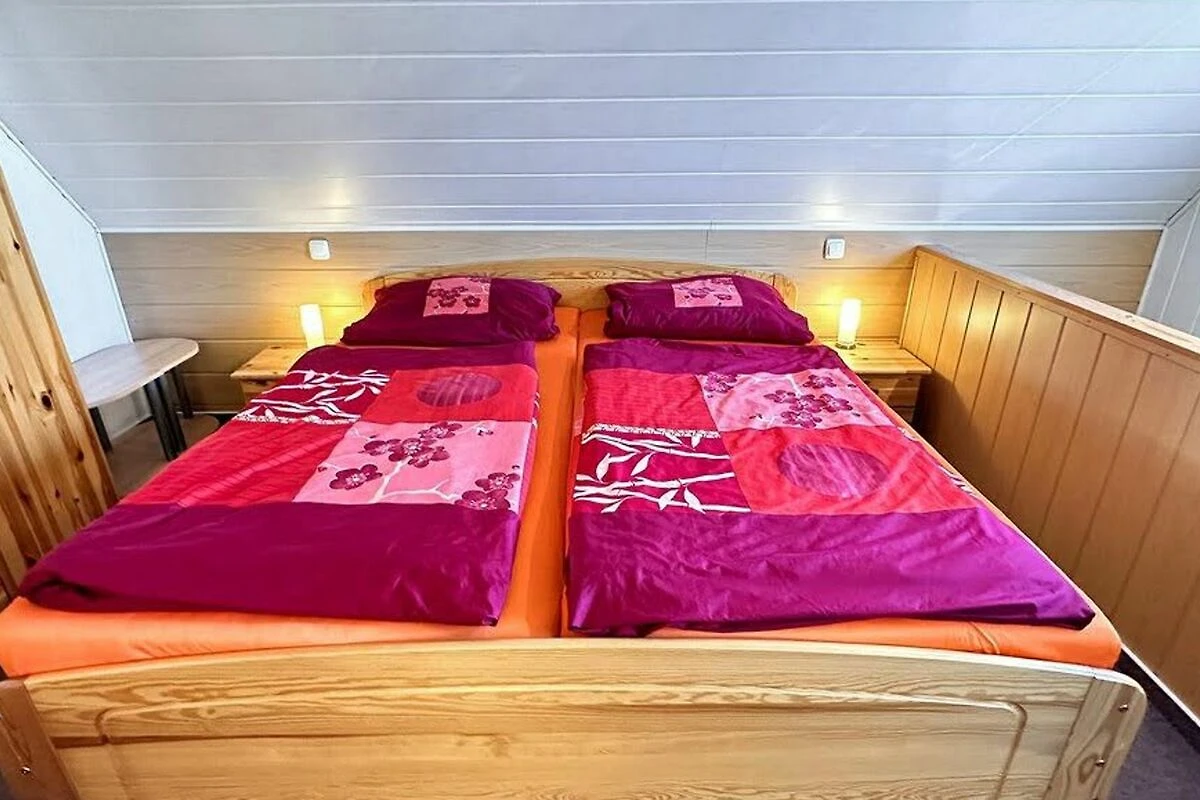Das ca. 40 qm grosse Ferienhaus für max. 2 Personen befindet sich separat auf dem etwa 700 Quadratmeter grossen Wohngrundstück des Gastgebers. Bis zum Ortskern sind es ca. 2 km. Das Ferienhaus erstreckt sich über zwei Wohnebenen. Im Erdgeschoss befinden sich eine Wohnküche Esstisch, E-Kochfeld, Kühlschrank mit Tiefkühlteil und div. Küchenkleingeräte sowie das Bad mit DU/WC und Fön. Im Obergeschoss (Zugang über steile Raumspartreppe) liegt der kombinierte Wohn-/Schlafraum mit Doppelbett, Polsterliege und Flachbild-TV. Beheizt wird die Unterkunft mit einer Elektroheizung (Nachtspeicherofen). Zur Verfügung stehen eine möblierte Terrasse mit Grill, eine sichere Unterstellmöglichkeit für Fahrräder und Parkplatz auf dem Grundstück. Internet (W-LAN) ist ebenfalls vorhanden.