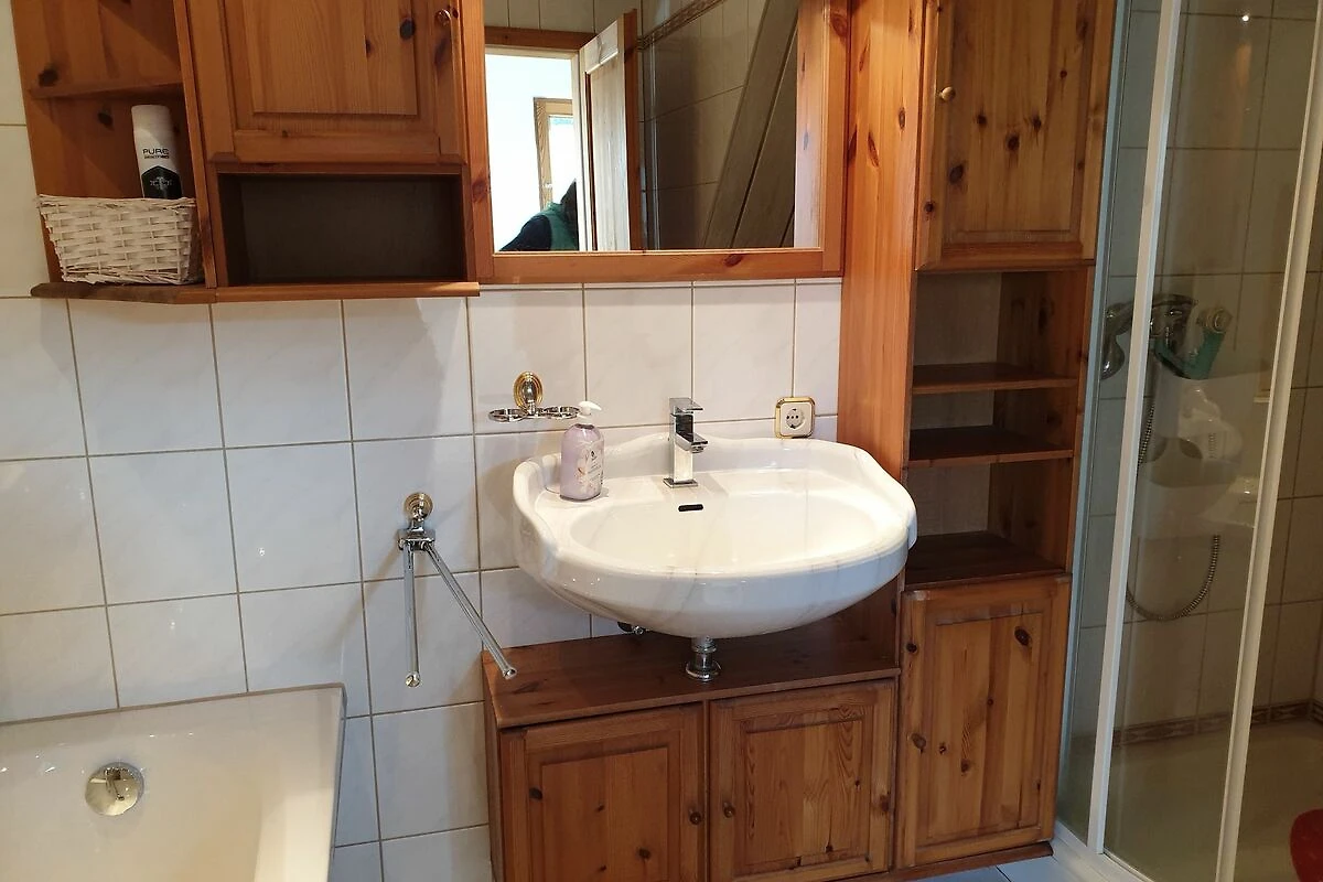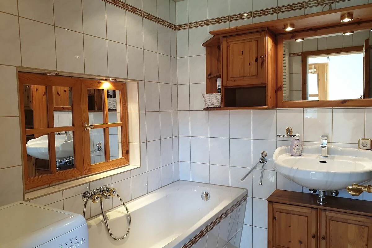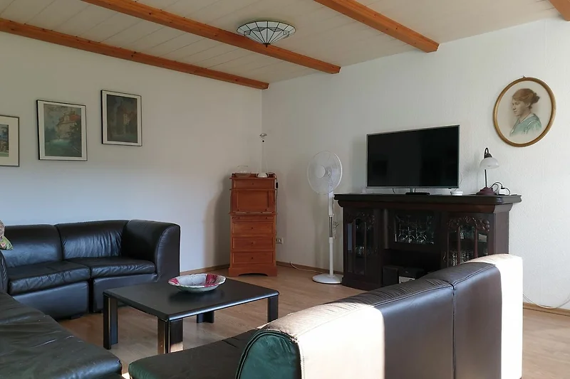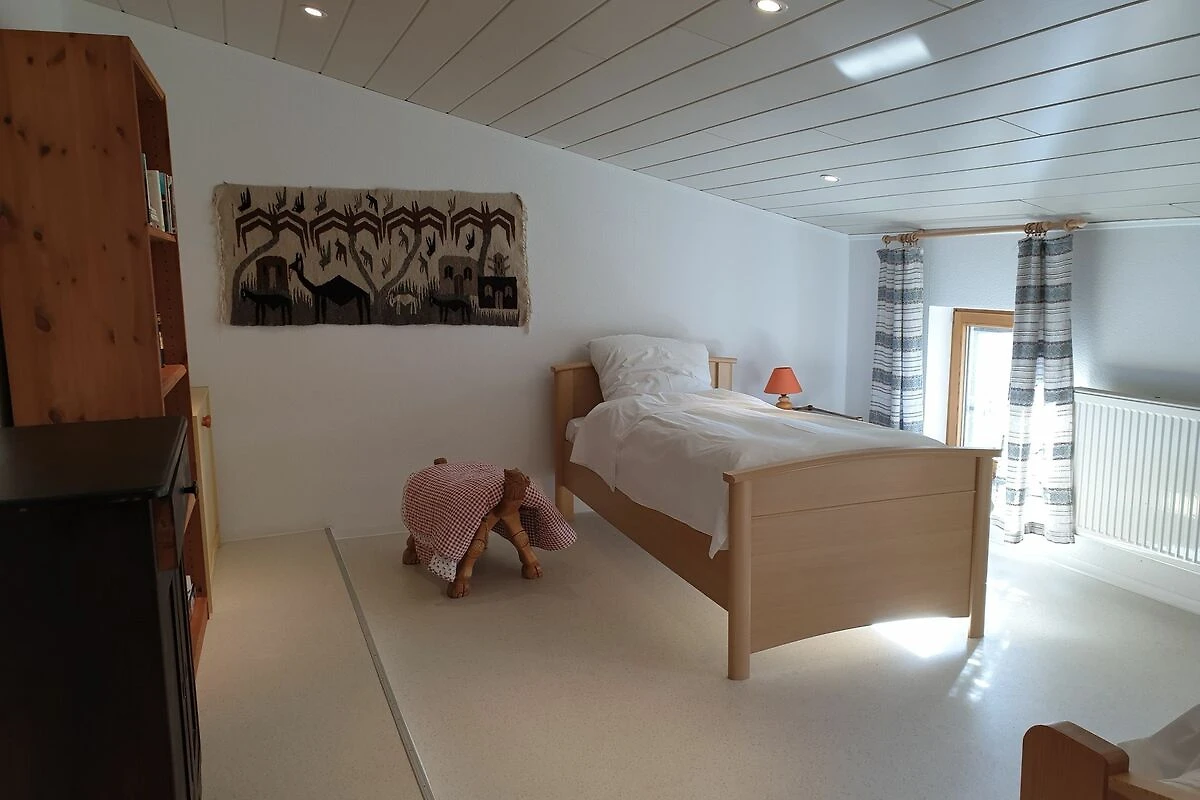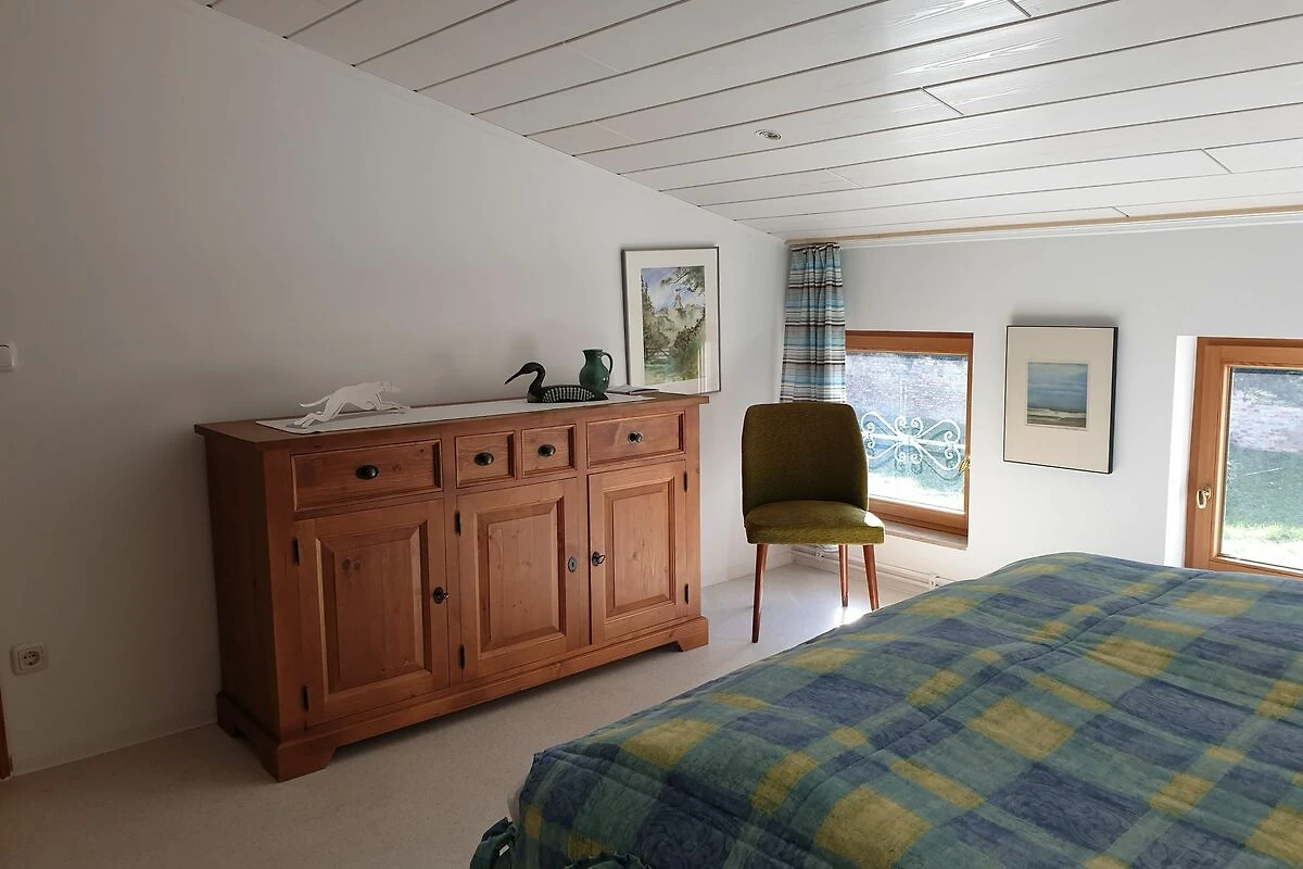 Optimal ist das Haus für bis zu 4 Personen. Es verfügt im OG über drei Schlafzimmer (1 Doppelbett 160x200cm, 4 Einzelbetten (90x200 cm) und zwei Wohnzimmer, davon ist ein Wohnzimmer im EG (mit Satelliten TV) und ein Wohnzimmer im OG. Das Bad mit Fussbodenheizung ist ausgestattet mit Dusche, Badewanne, Toilette und Waschmaschine. In der grosszügigen Wohnküche befinden sich ein Herd mit Backofen, ein Geschirrspüler, Kühl- und Gefrierschrank, Kaffeemaschine und Wasserkocher.