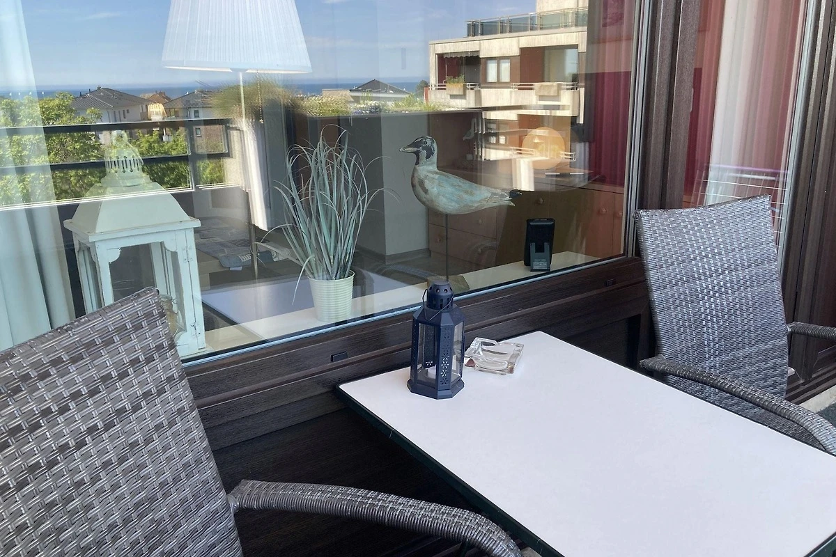 Die Ferienwohnung bietet einen traumhaften Aussenbereich mit herrlichem Blick auf die See. Hier lässt es sich wunderbar entspannen und die frische Luft geniessen. Die Gäste können sich im