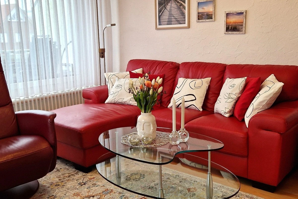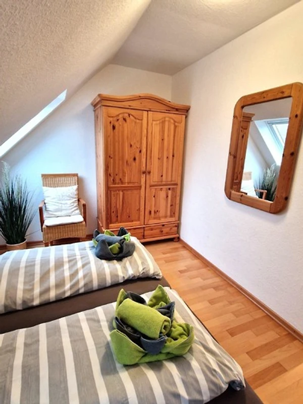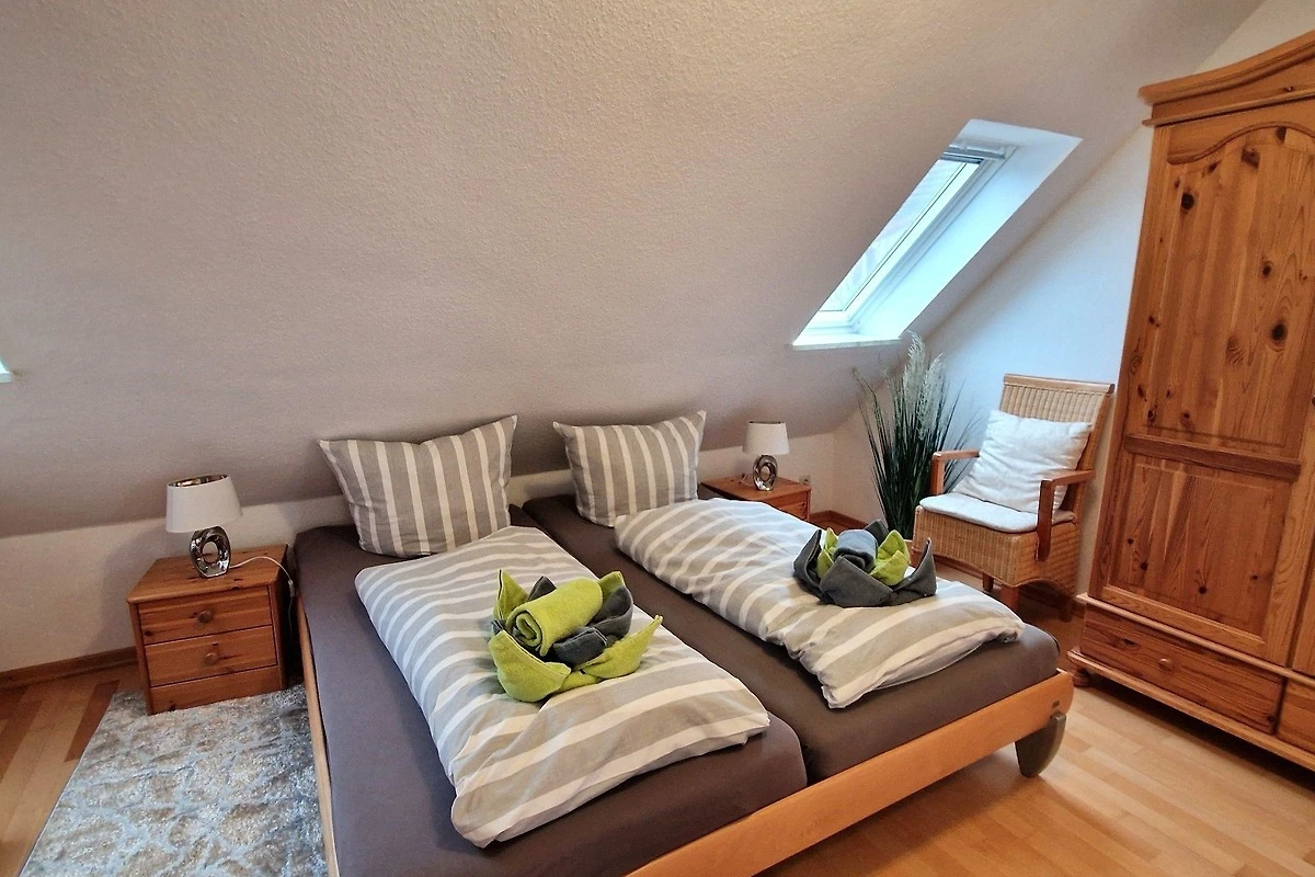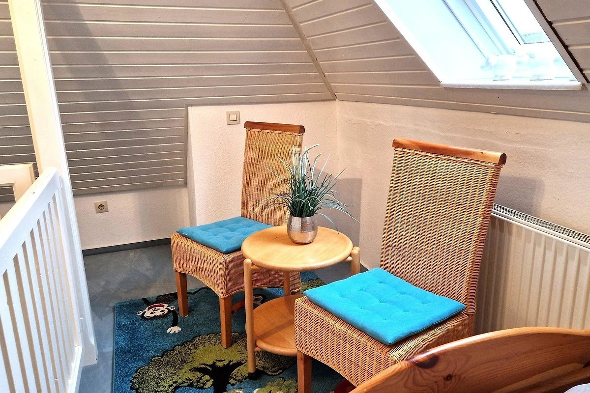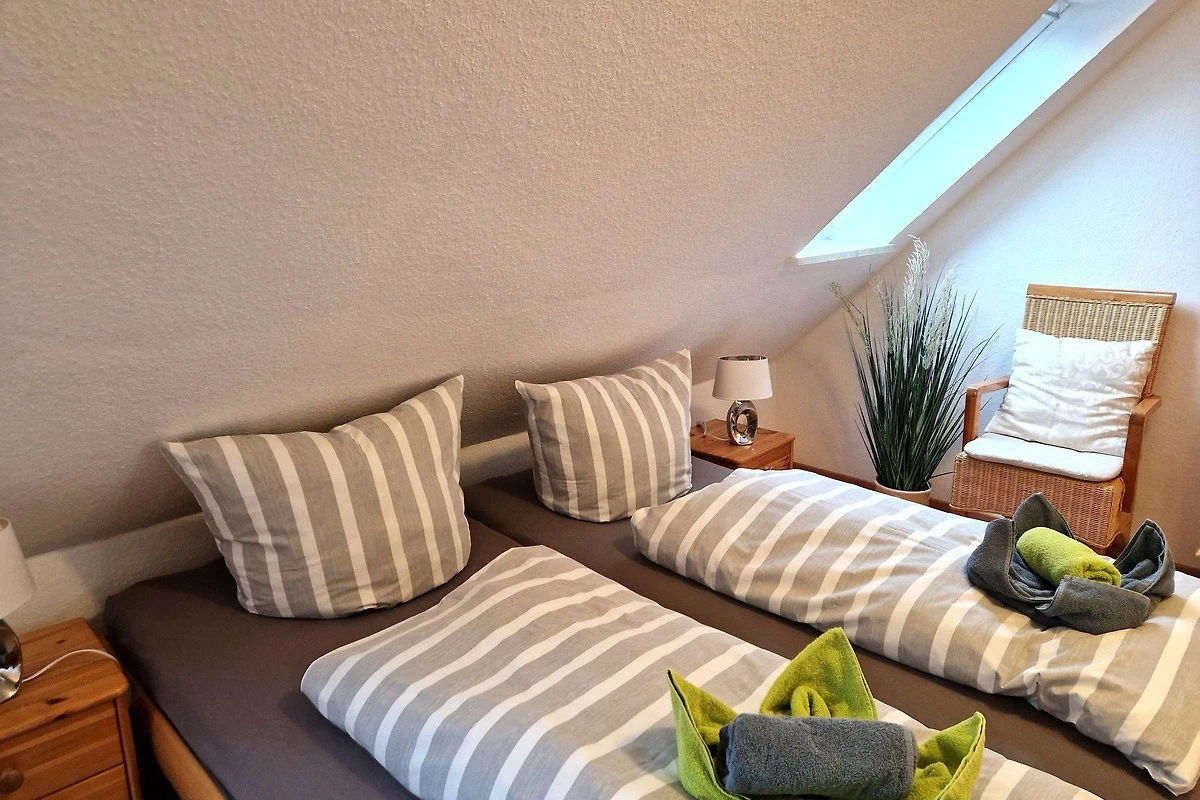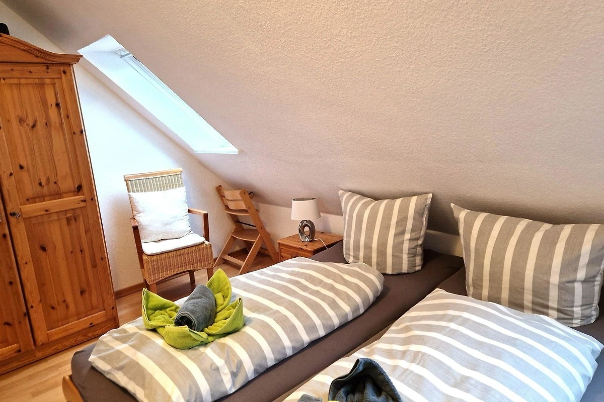 In den beiden Schlafzimmern finden sich ein Doppelbett und zwei Einzelbetten, die für erholsame Nächte sorgen. Das helle Badezimmer mit Fenster bietet eine Dusche, Haartrockner und Kosmetikspiegel. Der gemütliche Wohnbereich umfasst eine HiFi-Anlage, einen TV, ein Sofa und Sessel, perfekt zum Entspannen. Parker sind direkt verfügbar. Diese allergikergeeignete Ferienwohnung stellt sicher, dass sich alle Gäste wohlfühlen und die Zeit hier geniessen können.
