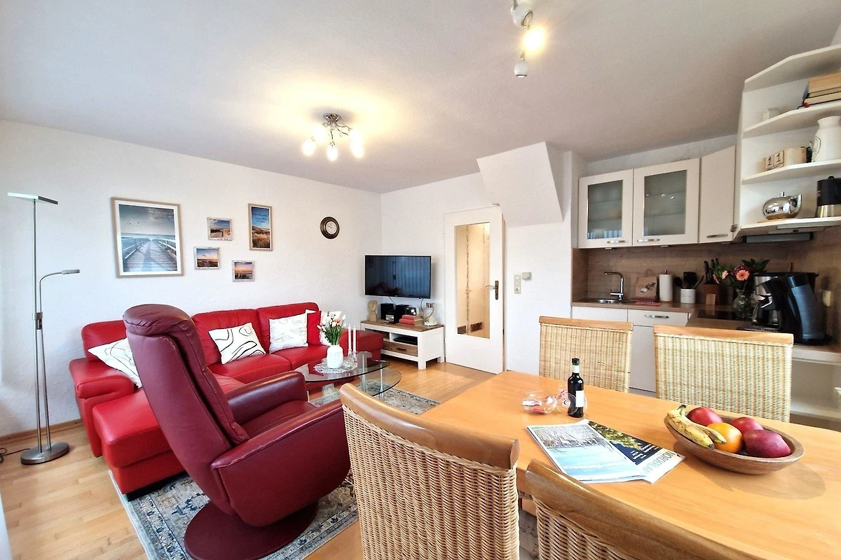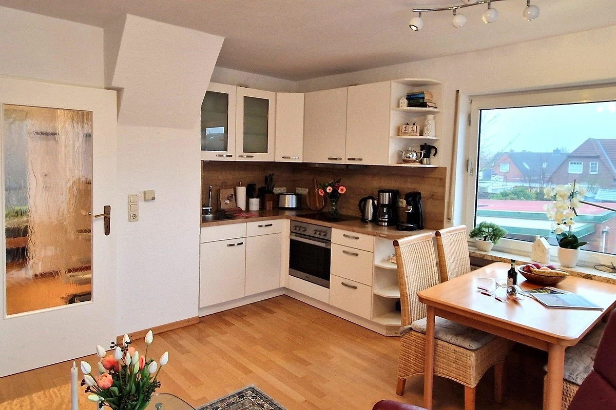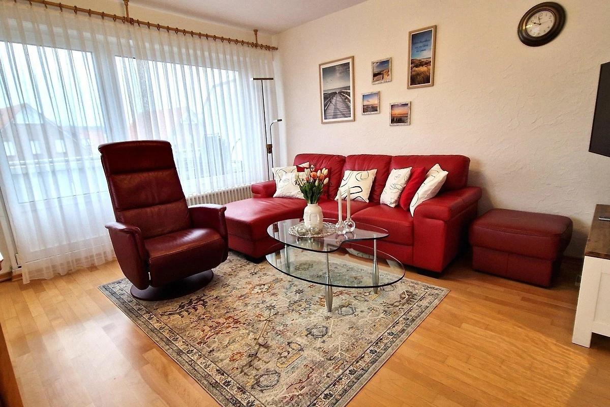 Die Ferienwohnung befindet sich in einem ruhigen Wohngebiet von Norddeich, nur wenige Gehminuten vom Strand entfernt. In einer Entfernung von etwa 800 Metern laden die Strände zu entspannten Bade- und Wassersportaktivitäten ein. Ein nahegelegener Golfplatz ist in etwa 3 Kilometern erreichbar, während Reittouren in der Umgebung angeboten werden. Für Naturliebhaber stehen vielfältige Möglichkeiten zum Walking, Radfahren und Vogelbeobachten zur Verfügung. Familien können den nur 1,5 Kilometer entfernten Wasserpark oder die Spielplätze in der Nähe besuchen. Auch kulturelle Angebote, wie ein Museum, befinden sich in der direkten Umgebung. Die Anreise ist unkompliziert, da die Unterkunft gut an die Hauptverkehrsstrassen angebunden ist und die nächsten grösseren Städte schnell zu erreichen sind. Restaurants und Einkaufsmöglichkeiten sind ebenfalls in der Nähe, was den Aufenthalt besonders bequem gestaltet.