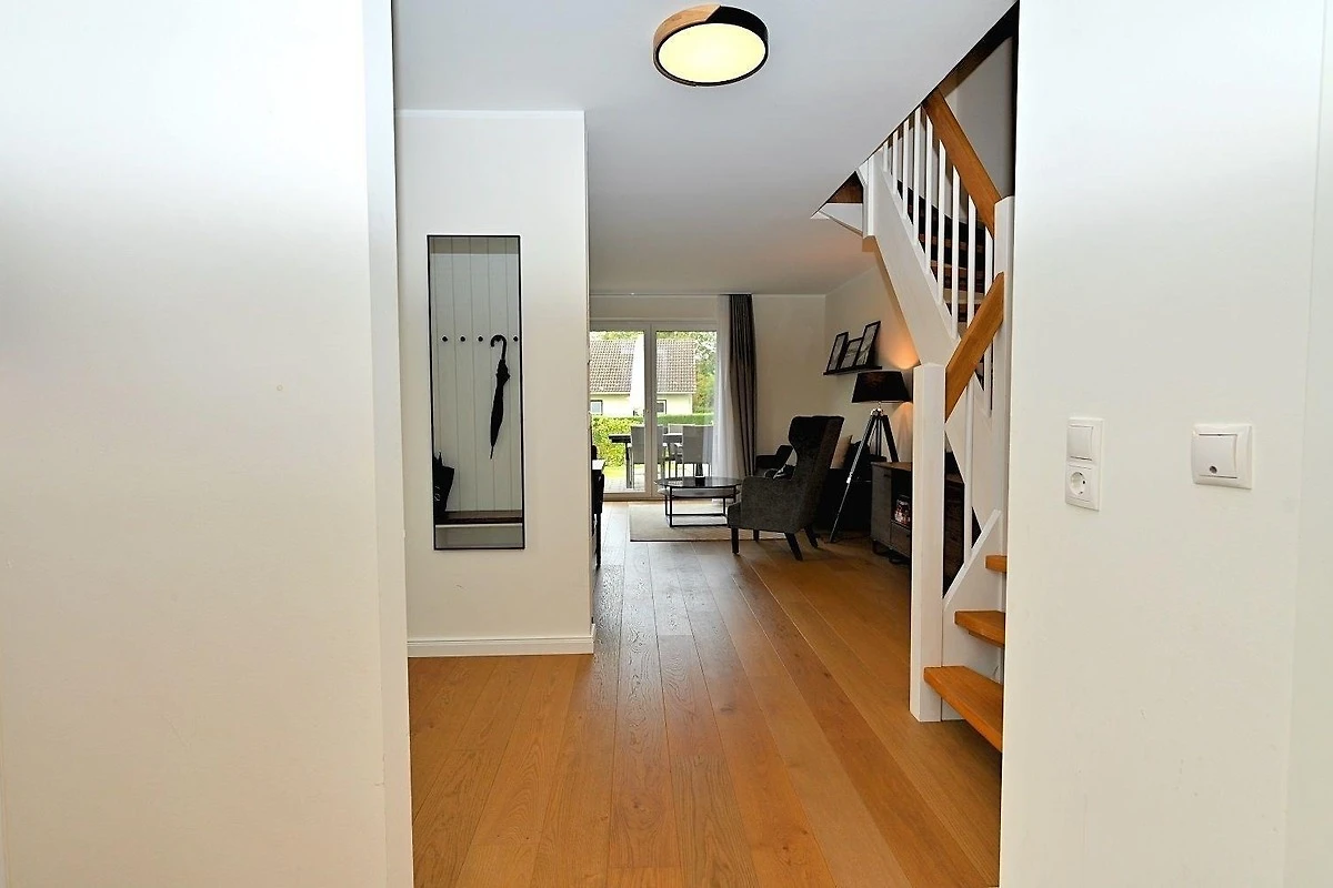 Das moderne Ferienhaus in Hohwacht liegt nur 150 Meter von der Ostsee entfernt und bietet Platz für bis zu vier Personen. Der grosszügige Wohn- und Essbereich ist mit einem gemütlichen Sofa, einem 55-Zoll-Smart-TV und einem Kamin ausgestattet, was zu entspannten Abenden einlädt. Die offene Küche verfügt über hochwertige BOSCH-Geräte, darunter ein Induktionskochfeld und ein Backofen, sowie sämtliches Koch- und Essgeschirr. Das Badezimmer im Obergeschoss beeindruckt mit einer XL-Regendusche, während ein separates Gäste-WC im Erdgeschoss zur Verfügung steht. In den beiden Schlafzimmern sorgen COCO-MAT Boxspringbetten aus Naturmaterialien für hohen Schlafkomfort. Praktische Extras wie WLAN, Waschmaschine, E-Ladesäule und ein abschliessbarer Fahrradraum runden die Ausstattung ab. Haustiere sind in dieser Unterkunft nicht erlaubt.