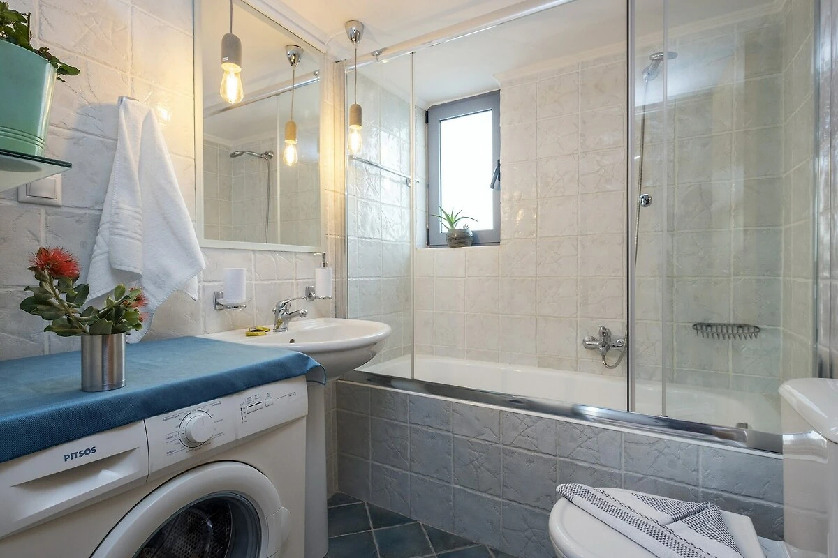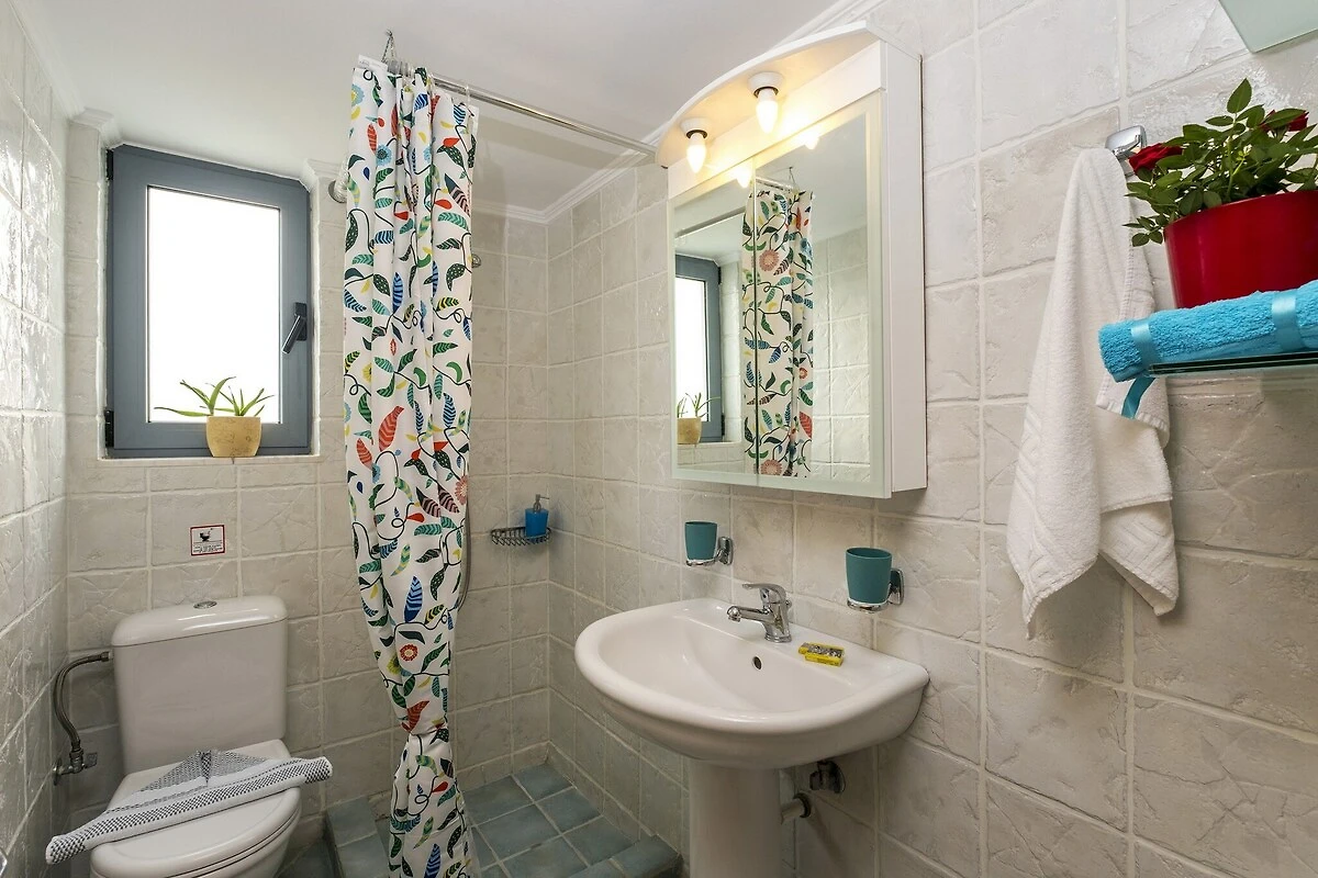 Die offene Küche ist komplett mit modernen Geräten ausgestattet, darunter Kühlschrank, Mikrowelle, Backofen, Gefrierschrank und Geschirrspüler. Sie verfügt außerdem über eine Kaffeemaschine, einen Toaster, einen Wasserkocher, eine Saftpresse und alle notwendigen Küchenutensilien wie Teller, Schüsseln, Geschirr und Besteck. Egal, ob Sie zu Hause kochen, eine Mahlzeit auf der Terrasse genießen oder Zeit am Strand verbringen, diese Villa bietet alles, was Sie für einen erholsamen und unvergesslichen Aufenthalt in Almyrida benötigen.