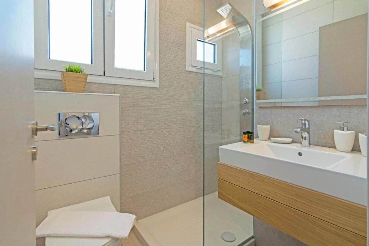 Dieses moderne Apartment in Chania bietet einen komfortablen und stilvollen Aufenthalt mit zwei Schlafzimmern, perfekt für bis zu vier Gäste. Mit 50 m² Wohnfläche ist das neu gebaute Apartment hell und gut ausgestattet und bietet eine entspannte Atmosphäre nur wenige Schritte vom Strand entfernt. Das Anwesen befindet sich 20 Meter vom örtlichen Sandstrand entfernt und bietet einfachen Zugang zum Wasser und eine ruhige Umgebung zum Entspannen. Zu den weiteren Annehmlichkeiten gehören eine Klimaanlage im gesamten Apartment, WLAN, ein Fernseher mit Satellitenkanälen in mehreren Sprachen und ein Haartrockner für zusätzlichen Komfort.