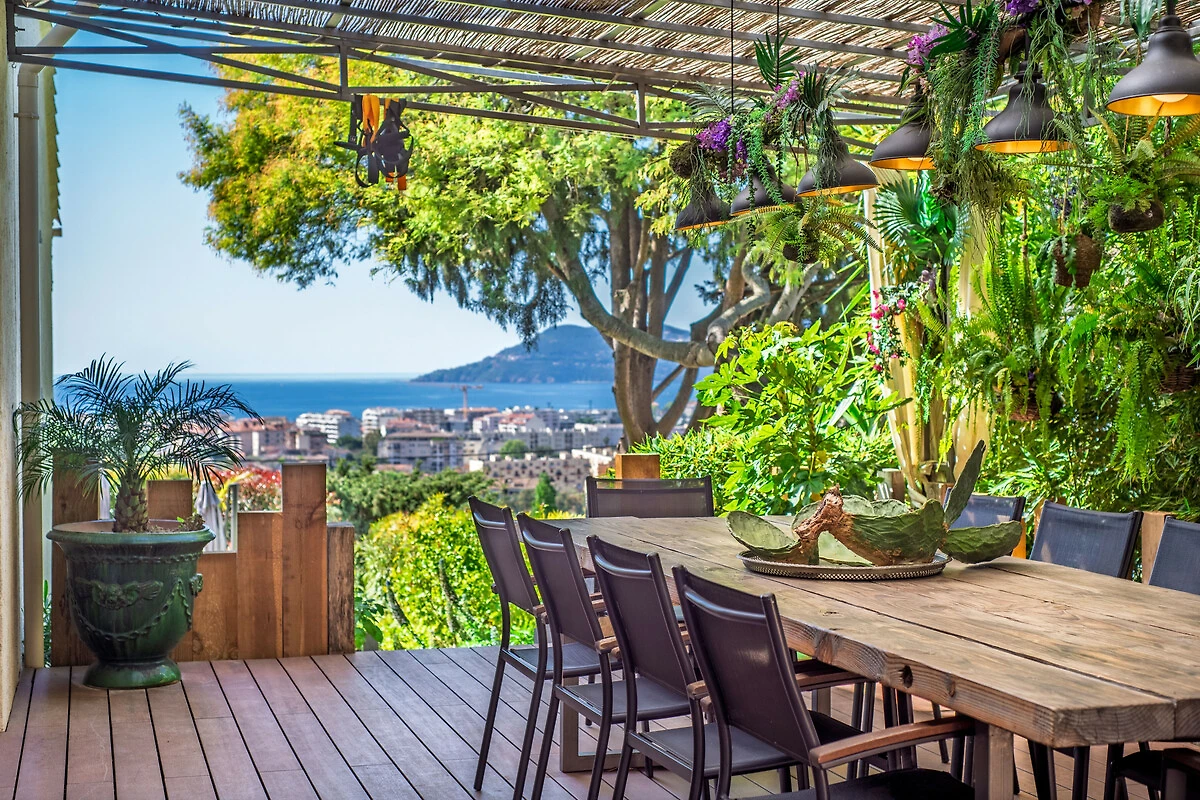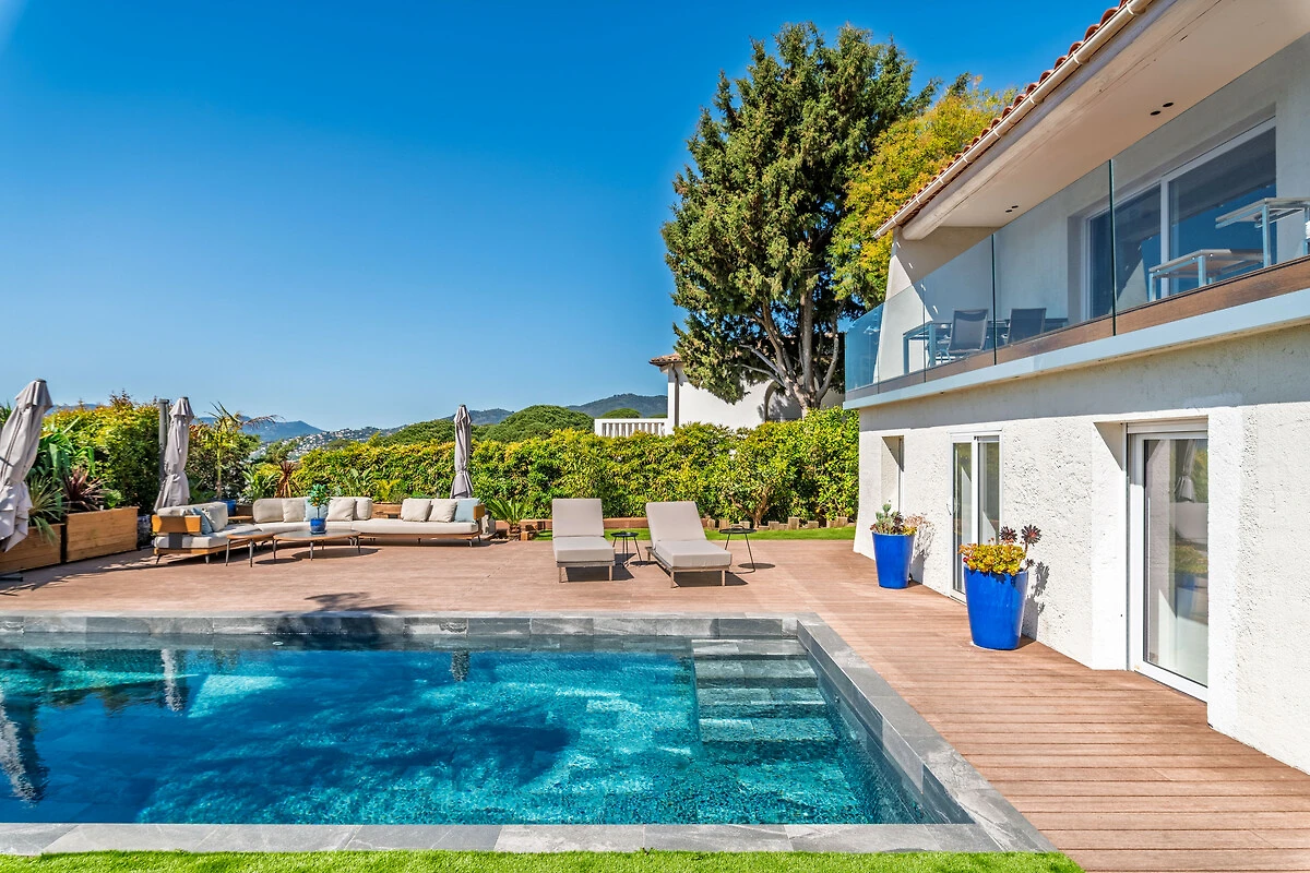 Diese provenzalische Villa mit 260 m², die 2016 in einem zeitgenössischen Stil vollständig renoviert wurde, ist an einem Berghang im Viertel La Croix-des-Gardes gelegen, nur 10 Minuten vom Stadtzentrum von Cannes entfernt. Sie bietet einen schönen Blick auf die Bucht von La Napoule, mit den Erhebungen des Estérel-Massivs im Hintergrund.