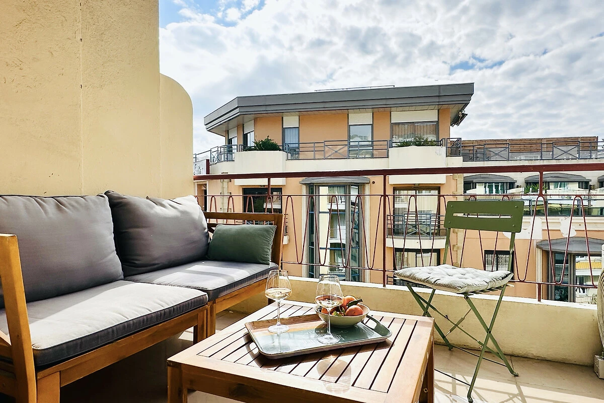 Ideal gelegen nur wenige Schritte vom legendären Strand des Martinez und der berühmten Croisette entfernt und nur 10 Gehminuten vom Palais des Festivals, empfängt Sie die lichtdurchflutete Wohnung Mike im 5. Stock eines Gebäudes mit Aufzug. Kürzlich renoviert und vollständig klimatisiert, bietet sie einen modernen und komfortablen Rahmen, der durch eine angenehme, nach Süden ausgerichtete Terrasse aufgewertet wird, perfekt um die Sonne von Cannes zu geniessen.