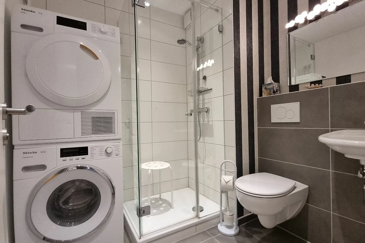 Praktische Annehmlichkeiten wie WLAN, eine Waschmaschine sowie ein Gemeinschaftstrockner und ein Privatparkplatz runden das Angebot ab. Ihrer Sicherheit wird durch einen Rauchmelder und einen Verbandskasten Rechnung getragen. Die Unterkunft ist Nichtraucher-freundlich und daher bestens für Allergiker geeignet.
