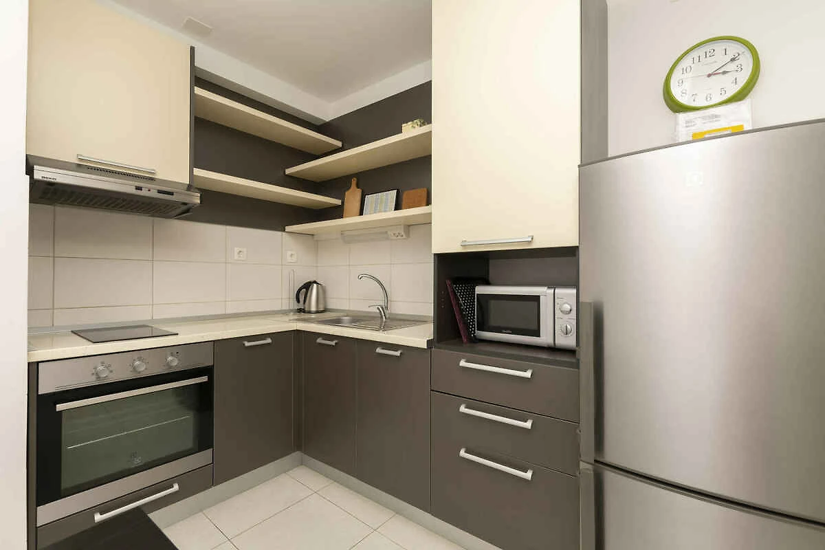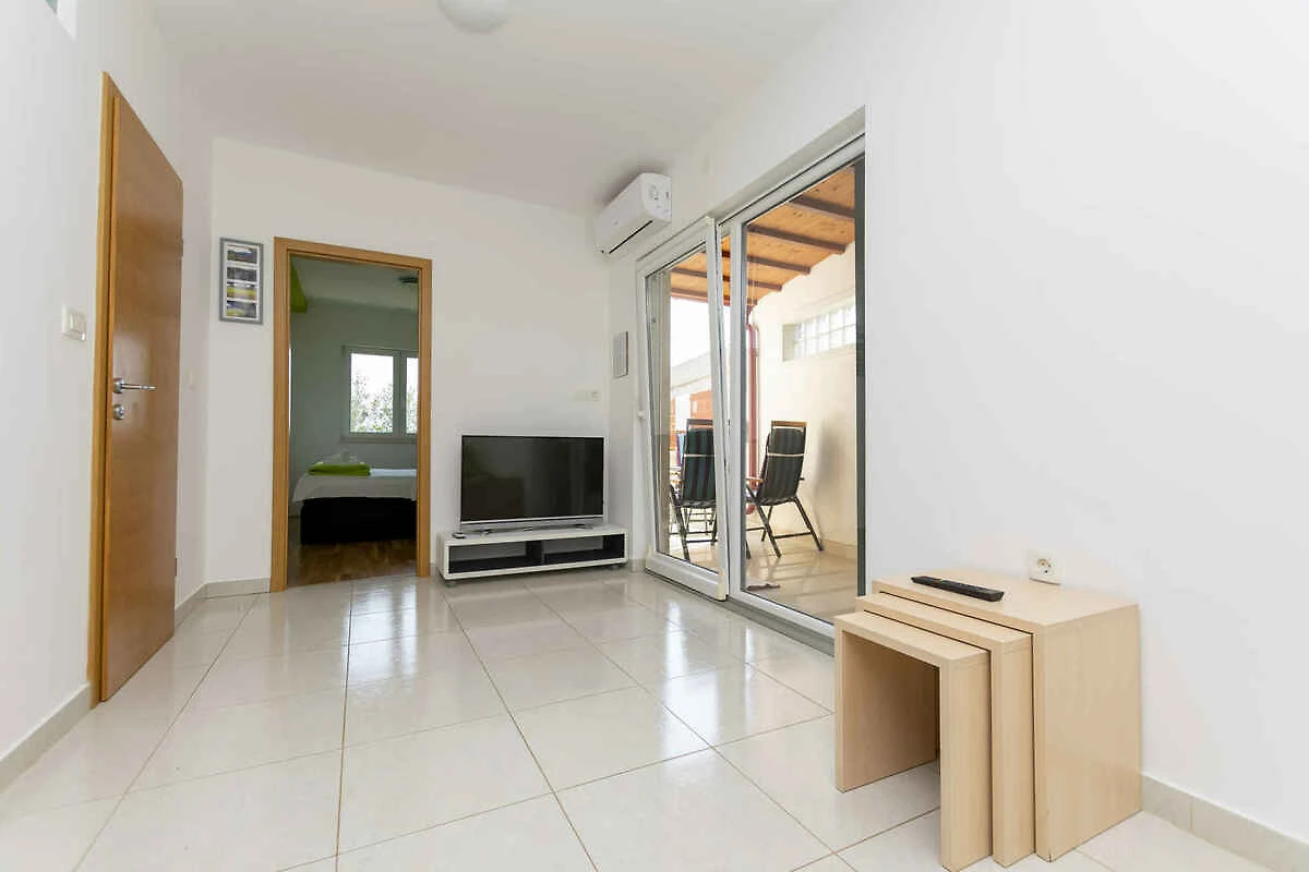 Einkauf 500 m, Restaurant 500 m, Ortszentrum 800 m. Die nächste Haltestelle für den öffentlichen Nahverkehr ist 500 m entfernt. Mimice: Arzt, Apotheke, Bank jeweils 11 km. Diskothek 4 km. Flughafen in Split 58 km. Im Sommer: Bademöglichkeit 70 m in Mimice (Strand 70 m in Mimice mit Kies, Steinen, Felsen und Badeplateaus). Tennis, Minigolf, Tauchen jeweils 11 km in Mimice. Bootsverleih in Split 36 km.