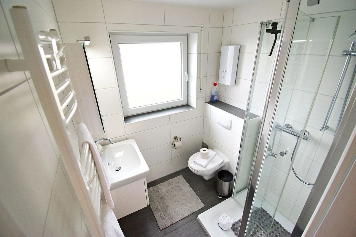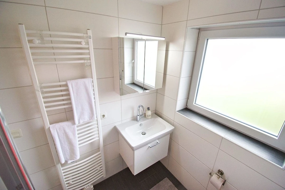 Das Tageslichtbad mit Dusche befindet sich ebenfalls im Obergeschoss.