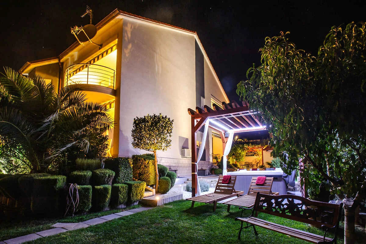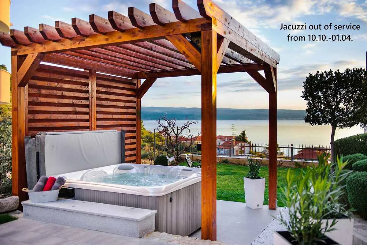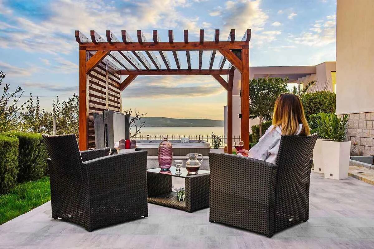 Podstrana. Die Ferienwohnung befindet sich in einer Ferienanlage, auf einem geschlossenen Gartengrundstück mit Blumen, Sträuchern und Bäumen, von einem Zaun begrenzt. Die Zufahrt erfolgt über eine Nebenstrasse (asphaltiert). Parkplatz auf dem Grundstück.