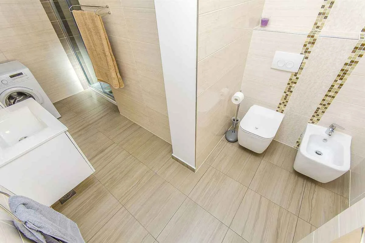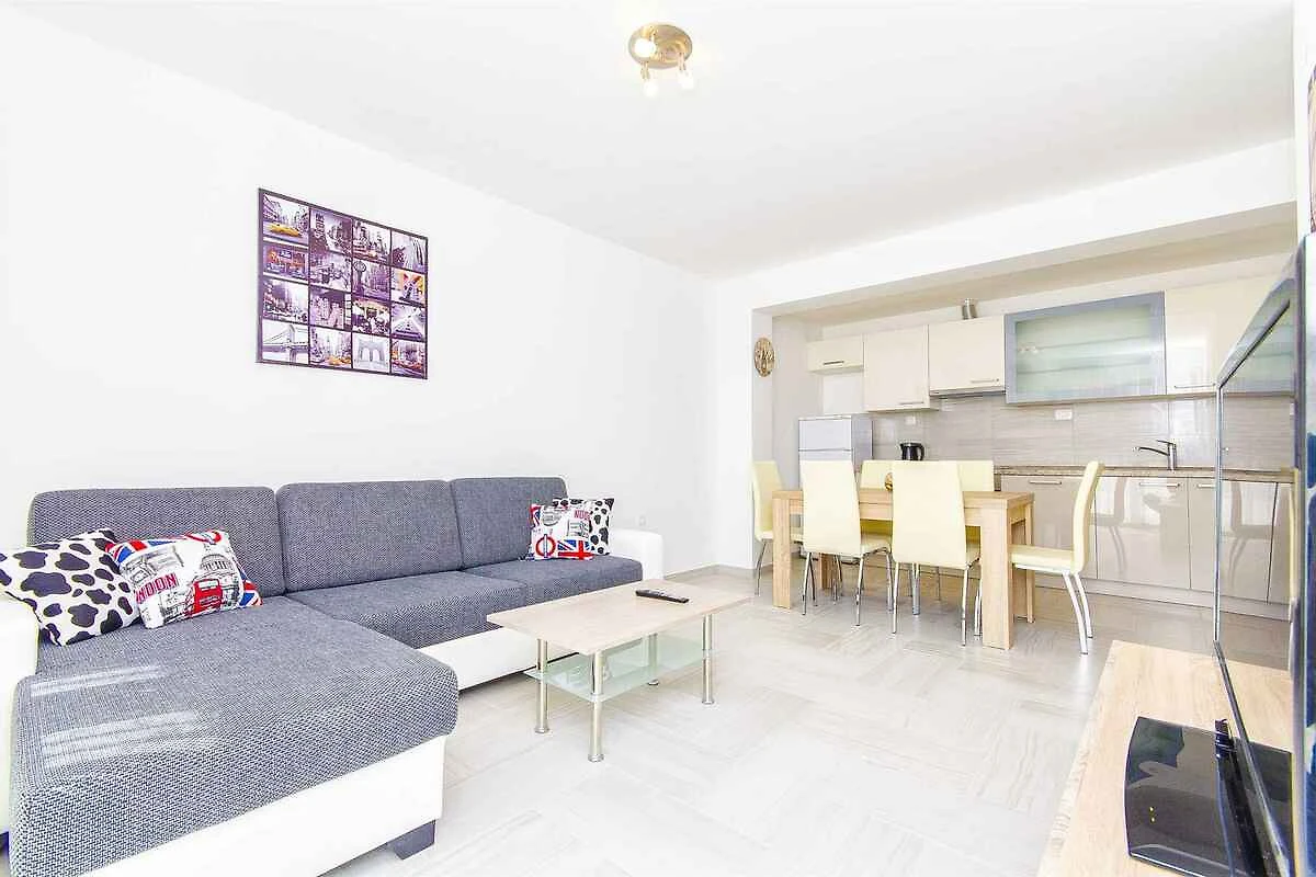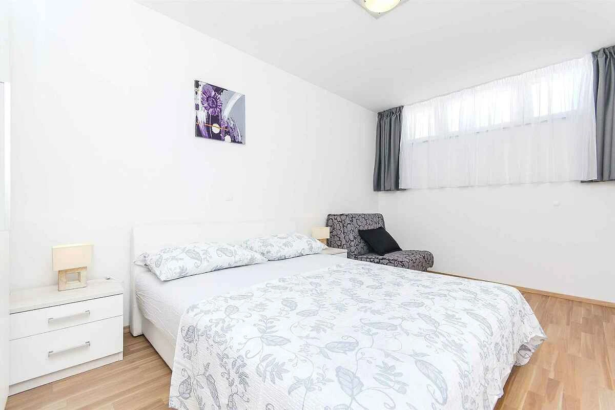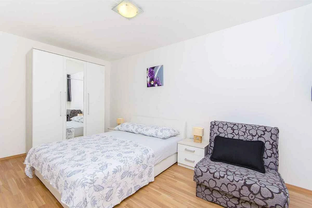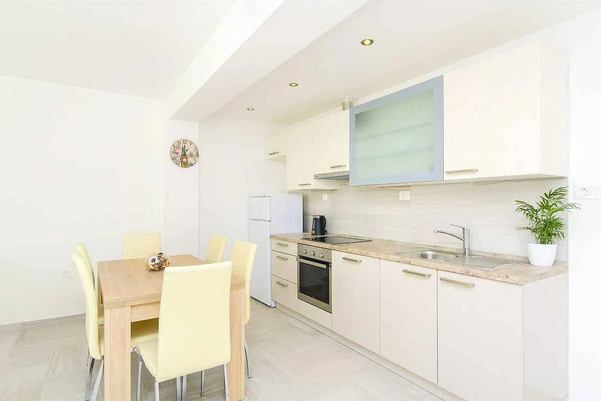 Podstrana. Die Ferienwohnung befindet sich in einer Ferienanlage, auf einem offenen Gartengrundstück. Die Zufahrt erfolgt über eine Nebenstrasse (asphaltiert). Parkplatz auf dem Grundstück und der Strasse vor dem Haus.