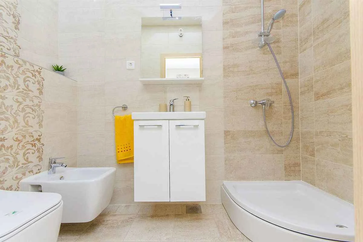 Einkauf 150 m, Restaurant 100 m, Ortszentrum 2 km. Die nächste Haltestelle für den öffentlichen Nahverkehr ist 100 m entfernt. Podstrana: Arzt 1000 m, Apotheke 1001 m, Diskothek 4 km und Bank 6,5 km. Flughafen in Split 28 km. Im Sommer: Bademöglichkeit 110 m in Podstrana (Strand 100 m in Podstrana mit Kies). Tennis, Tauchen jeweils 4 km in Podstrana. Bootsverleih in Split 9 km.