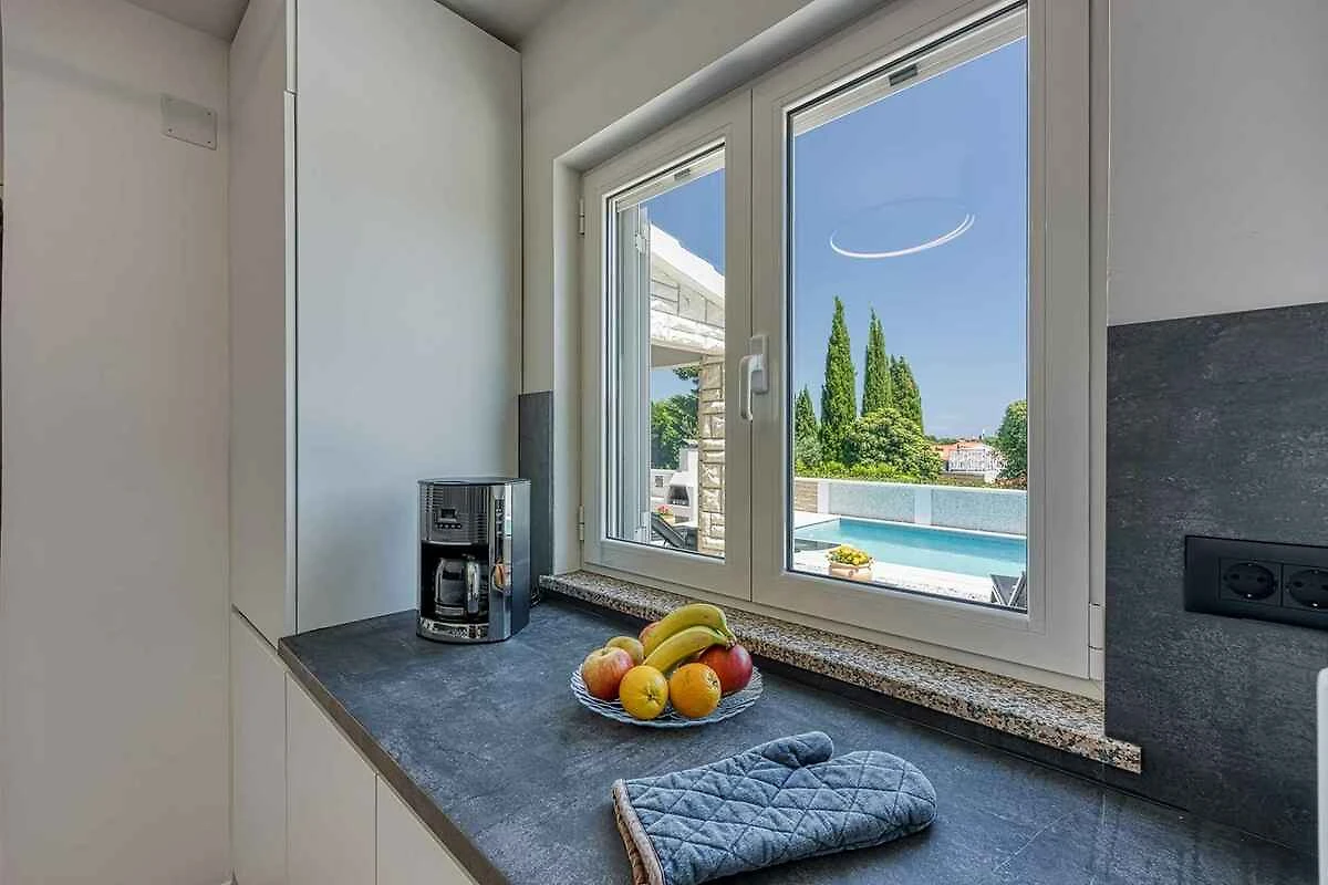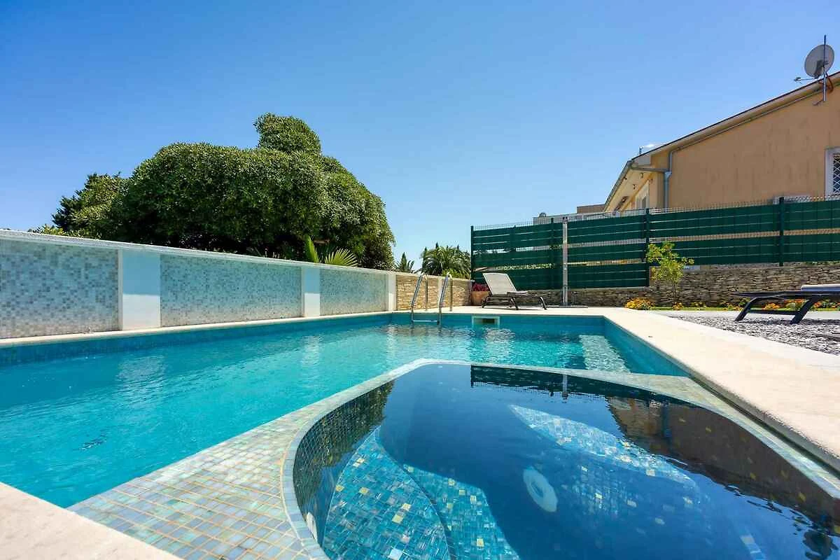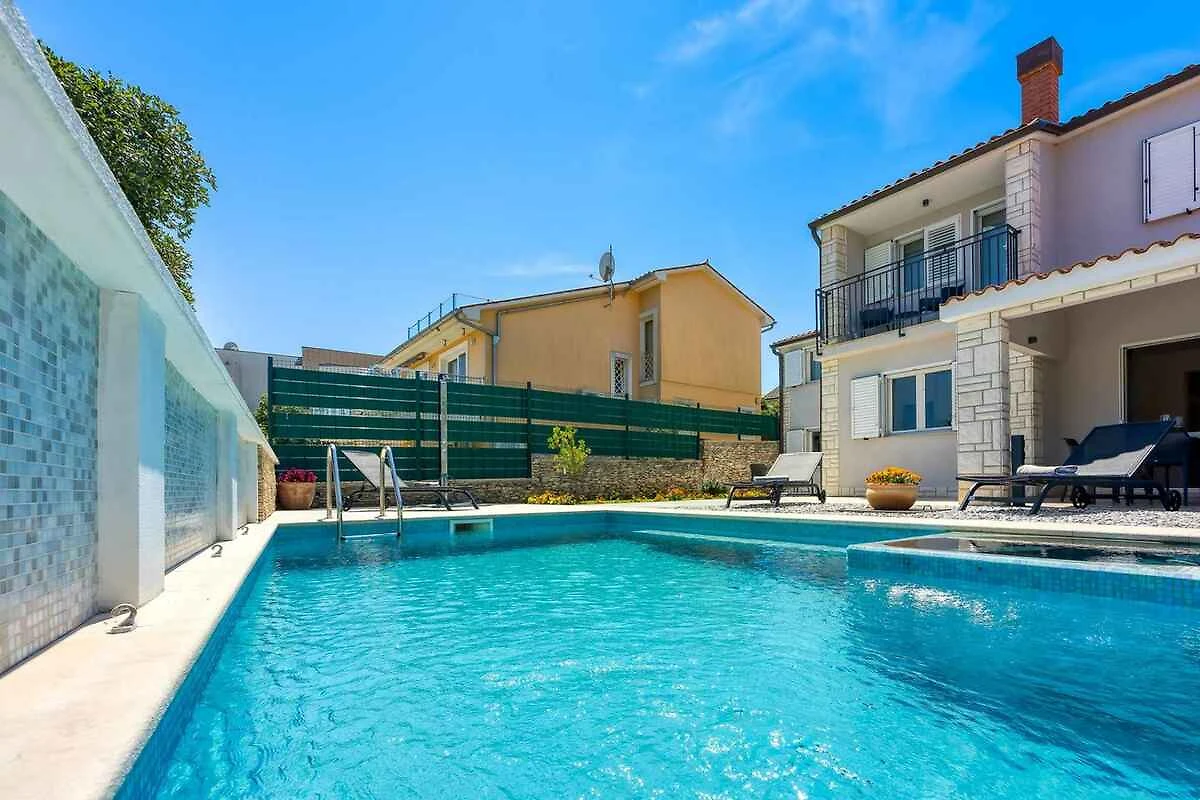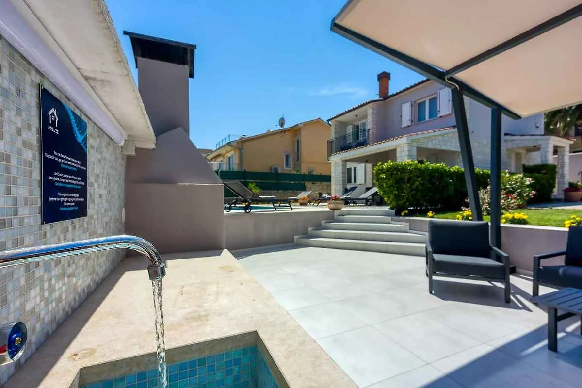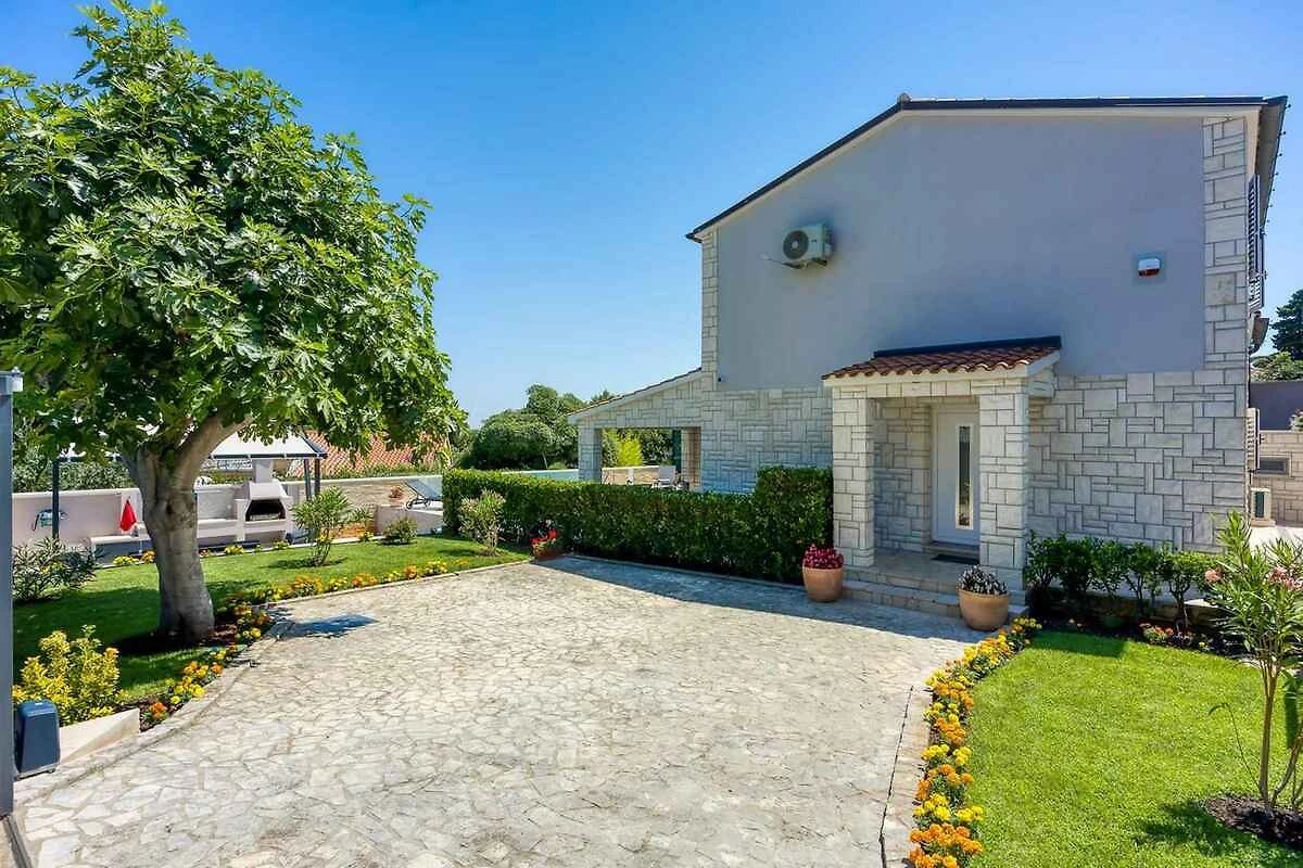 Premantura. Die Villa befindet sich auf einem 900 qm grossen, geschlossenen Gartengrundstück, von einem Zaun begrenzt. Parkplatz (für 2 Pkws) auf dem Grundstück.