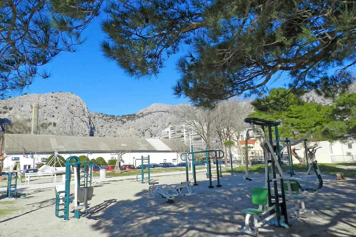 Einkauf 150 m, Restaurant 500 m, Ortszentrum 500 m. Die nächste Haltestelle für den öffentlichen Nahverkehr ist 150 m entfernt. Omiš: Arzt 100 m, Diskothek 2,5 km und Apotheke, Bank jeweils 500 m. Flughafen in Split 40 km. Im Sommer: Adriatischer Meer 70 m in Omiš (Strand 300 m in Omiš mit Kies). Minigolf, Tauchen jeweils 1500 m in Omiš. Bootsverleih in Split 25 km.