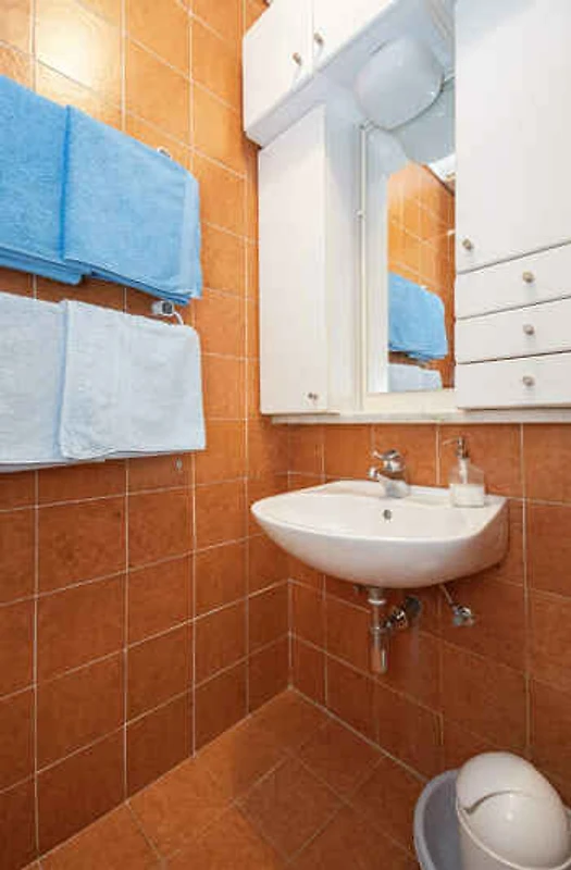 Omiš. Der Vermieter wohnt im Haus, nutzt jedoch einen separaten Eingang. Parkplatz auf einem Parkplatz im Ort (Entfernung 150 m).