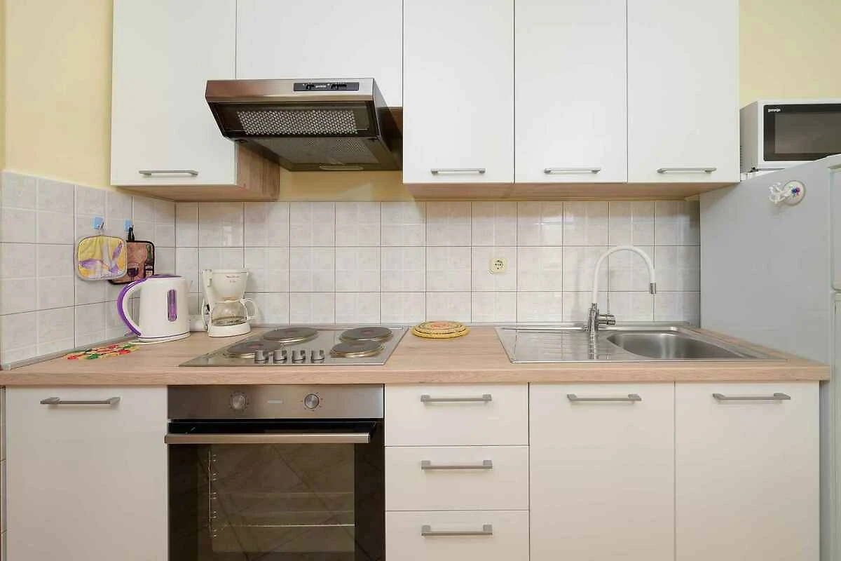 Segotic. Die Ferienwohnung befindet sich auf einem Gartengrundstück. Parkplatz (für 1 Pkw) auf dem Grundstück.