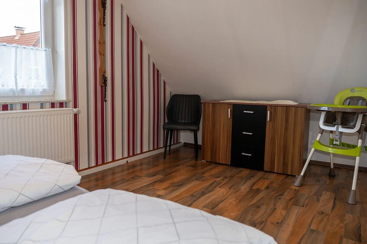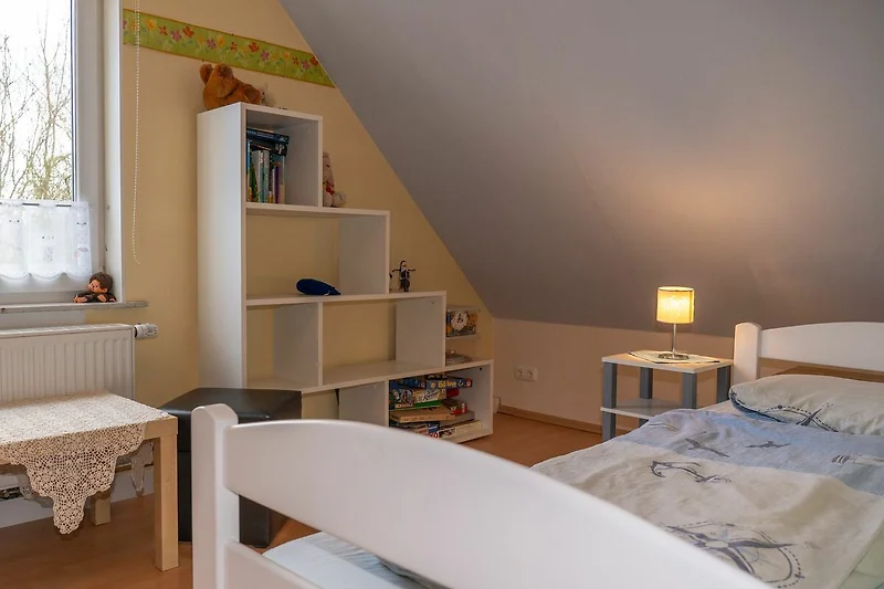 In der Wohnküche befindet sich eine voll ausgestattete Küchenzeile mit Kaffeemaschine, Wasserkocher, Toaster, Geschirrspüler, Backofen mit vier Ceranfeldplatten, Mikrowelle und Kühlschrank mit Gefrierfach. Eine gemütliche Essecke rundet diesen Bereich ab. Der Wohnbereich lädt mit einem Sofa und seinen Cocktailsesseln sowie einem 32 Zoll Flachbild Fernseher zum Relaxen ein. Ein Schlafzimmer ist mit einem Doppelbett (1,60 m x 2,00 m) ausgestattet. Das ander schlafzimmer (Kinderzimmer) ist mit 2 Einzelbetten (0,90 m x 2,00 m) versehen. Des Weiteren steht für ein Kleinkind, ein Kinder-Reisebett zur Verfügung. Das Bad ist mit einer Dusche, einer Toilette sowie einem Waschbecken ausgestattet.