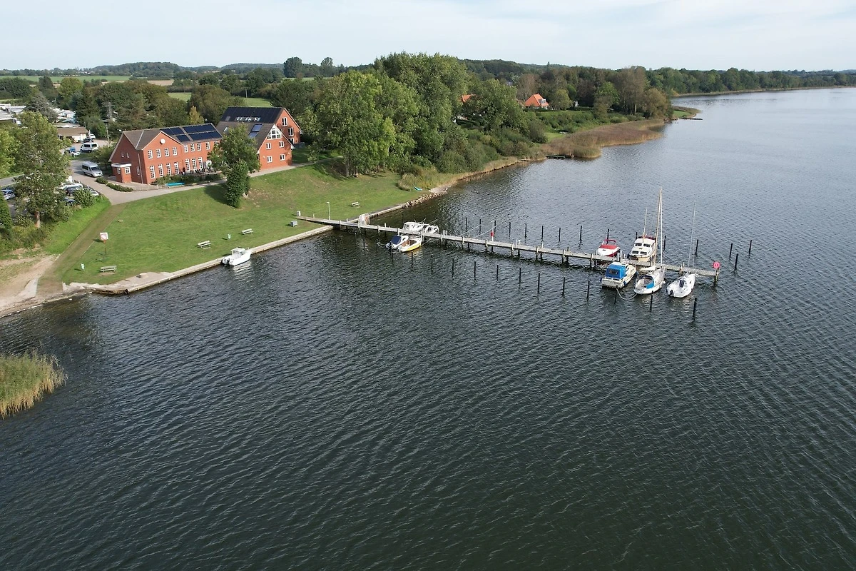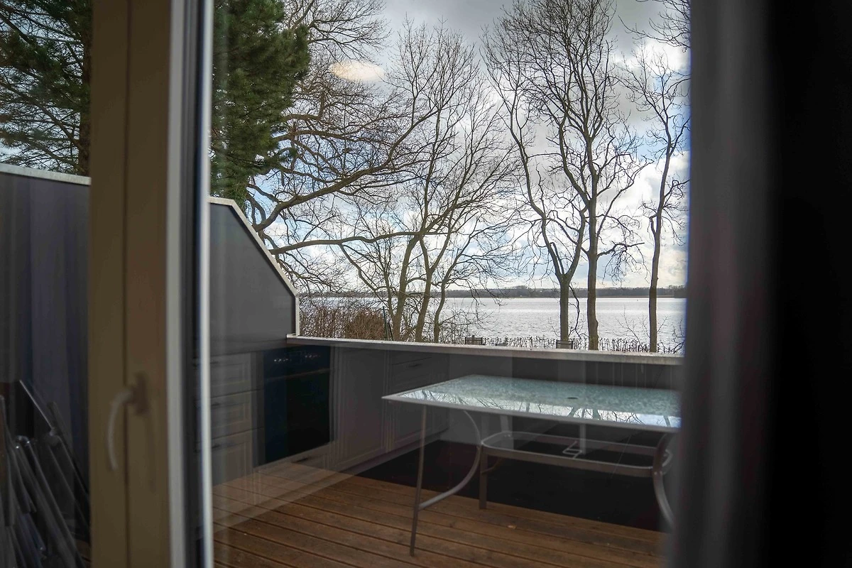 Die Terrasse, die dazugehörigen Sitzmöglichkeiten und der Grill sind für alle Gäste verfügbar. Von dort aus erhält man einen sehr schönen Ausblick auf die Schlei.