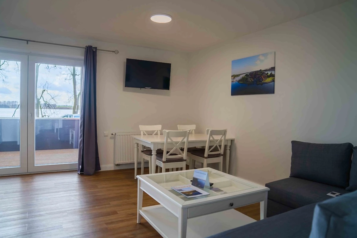 Wohnbereich: 1 Tisch mit 4 Stühlen, 1 Couchtisch, 1 Couch mit Schlaffunktion in der Grösse eines französischen Bettes Küche und Haushaltsgegenstände: 1 Küchenzeile mit 4-Plattenherd, Spüle, Backofen, Dunstabzugshaube mit Umluft, Kühlschrank mit Gefrierfach, Kaffeemaschine, Wasserkocher, Toaster, Kochtöpfe und Bratpfanne, Besteck und Gläser für 4 Personen