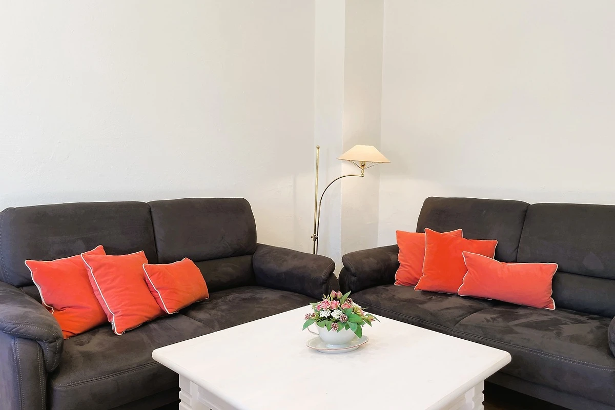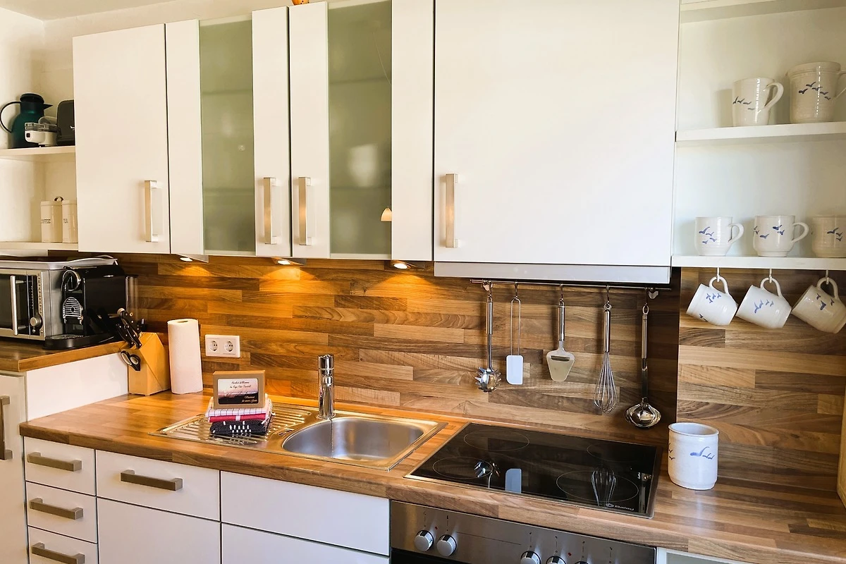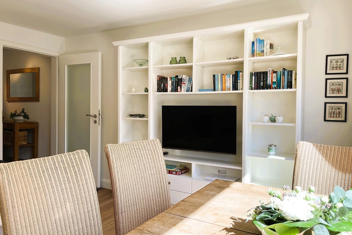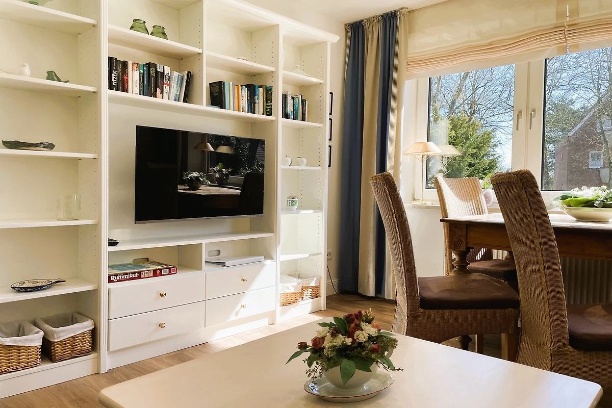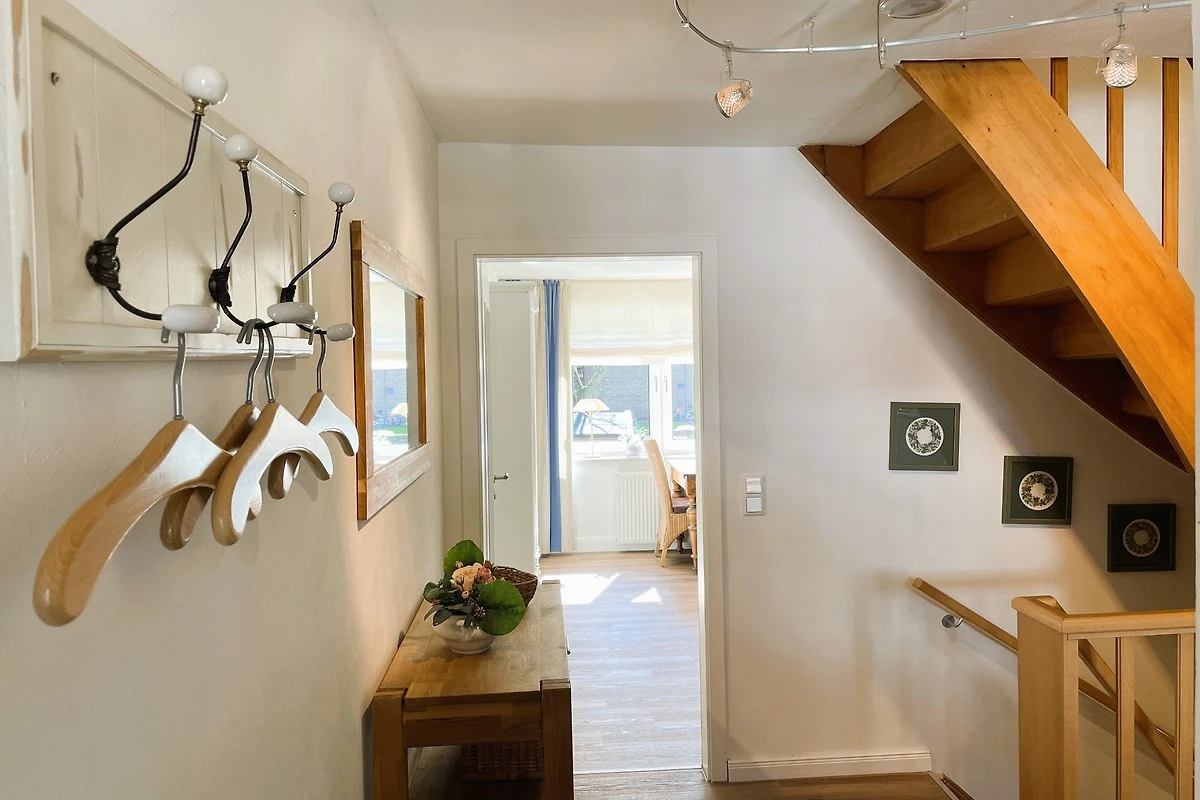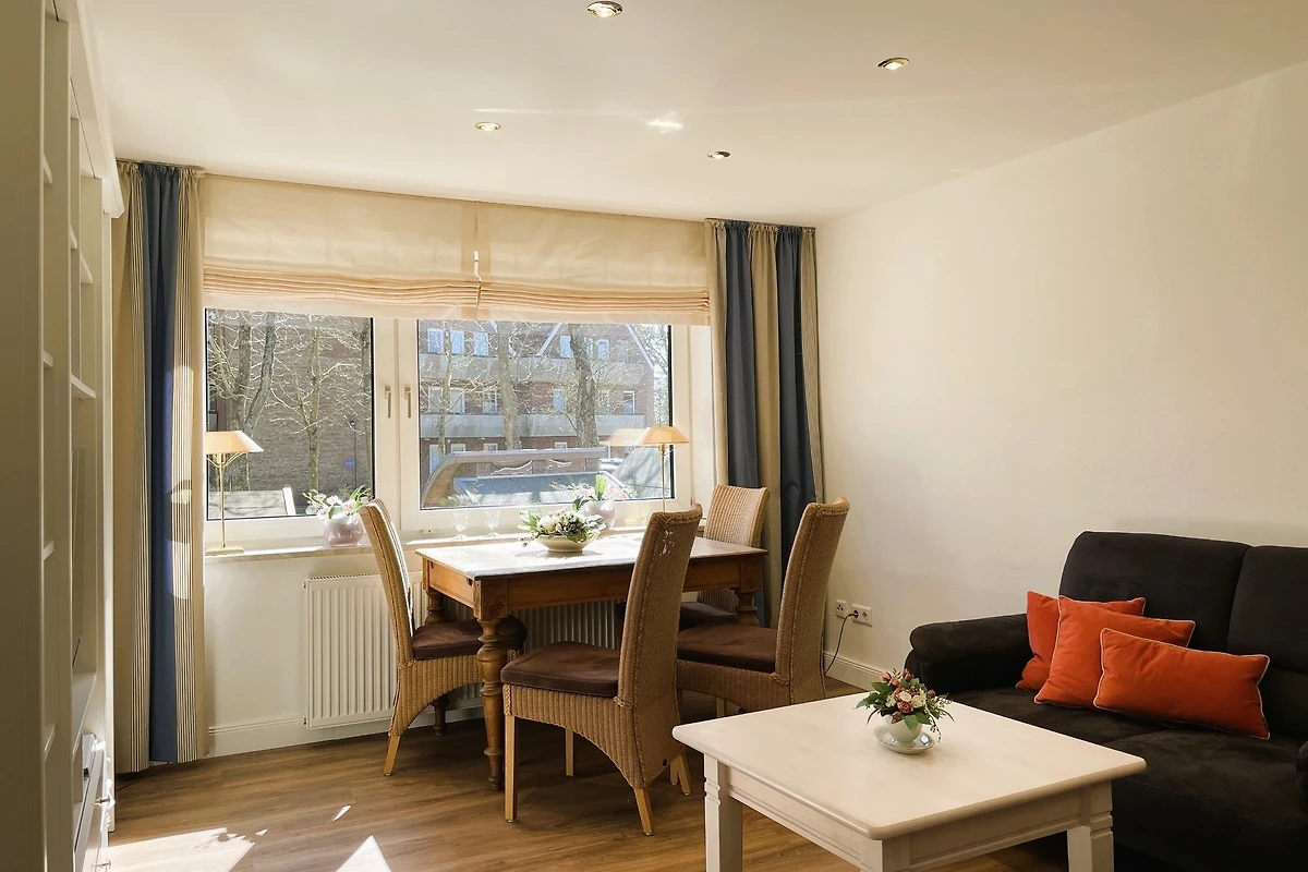 Entdecken Sie Ihren Traumurlaub in der exquisiten Ferienwohnung "Leuchtturm" auf der malerischen Insel Föhr! Diese charmante Unterkunft im Herzen von Wyk bietet Ihnen den perfekten Rückzugsort für bis zu 4 Personen. Verteilt über vier Etagen erwartet Sie ein herrliches Domizil: Im Hochparterre geniessen Sie die hochwertige Einbauküche und das gemütliche Wohnzimmer mit Parkettboden. Eine Etage höher finden Sie ein geschmackvolles Duschbad mit ebenerdiger Dusche, ein separates Gäste-WC sowie das Elternschlafzimmer mit Doppelbett, während im Dachgeschoss das zweite Schlafzimmer mit zwei Einzelbetten das ideale eigene Reich für Kinder ist. Im Souterrain steht Ihnen neben einem zweiten Bad mit ebenerdiger Dusche ein Lesezimmer als Rückzugsort mit direktem Zugang zur Terrasse und zum kleinen Garten zur Verfügung, ideal für entspannte Stunden im Freien. Unser "Leuchtturm" lässt keine Wünsche offen: Moderne Technik wie Flachbild-TV sowohl im Wohnzimmer, in den beiden Schlafzimmern und im Leseraum sowie eine Musikanlage und WLAN sorgen für Unterhaltung. Eine Waschmaschine und ein Trockner sind ebenfalls vorhanden und kostenfrei nutzbar. Zentral und dennoch ruhig gelegen, bietet die Ferienwohnung "Leuchtturm" den idealen Ausgangspunkt für Ihre Entdeckungstouren auf Föhr. Der kurze Weg zum Strand lädt zu ausgedehnten Spaziergängen und erholsamen Stunden am Meer ein. Erleben Sie unvergessliche Momente in dieser geschmackvoll eingerichteten Ferienwohnung, die mit ihrer hochwertigen Ausstattung und Ihrem Charme begeistert. Ihr Traumurlaub beginnt hier, im "Leuchtturm" – Ihrem Zuhause auf Zeit!