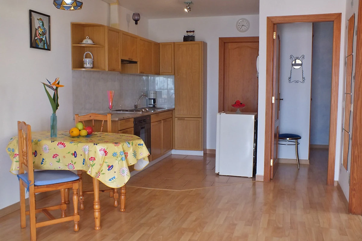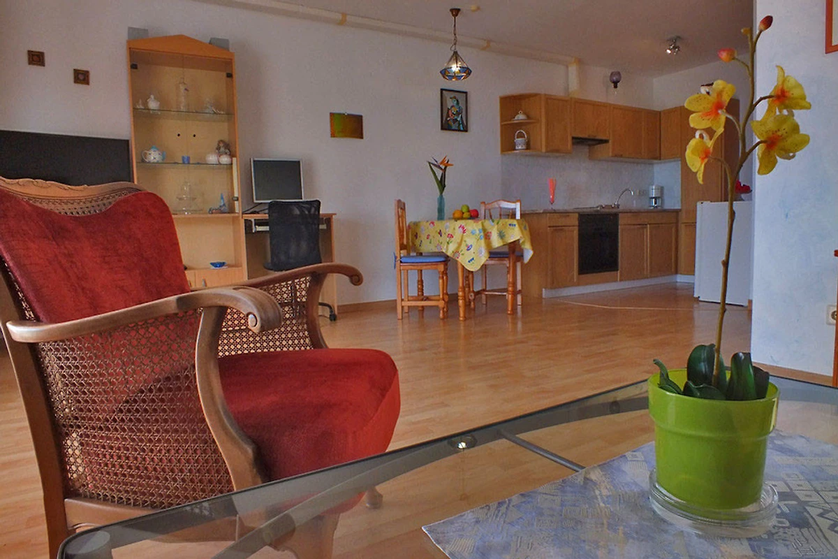 Die Küche bietet alles, was Sie zum Selbstversorgen benötigen. Sie verfügt über einen 2-Plattenherd, einen Backofen, einen Kühlschrank mit Gefrierfach und viele Annehmlichkeiten wie Mikrowelle, Kaffeemaschine, Toaster, Wasserkocher und Saftpresse. Das gemütliche Wohnzimmer lädt mit der Schlafcouch, dem Sessel und dem Flachbildfernseher mit Sat-TV zum entspannen ein.