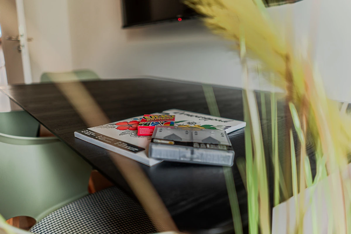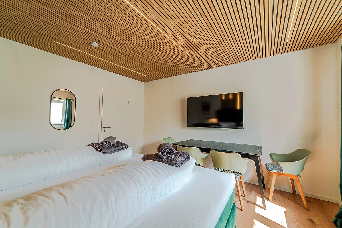 Wir bieten geräumige Schlafzimmer mit bequemen Schlafplätzen und einem praktischen Esstisch, um den Platz effizient zu nutzen und gleichzeitig maximalen Komfort zu gewährleisten.