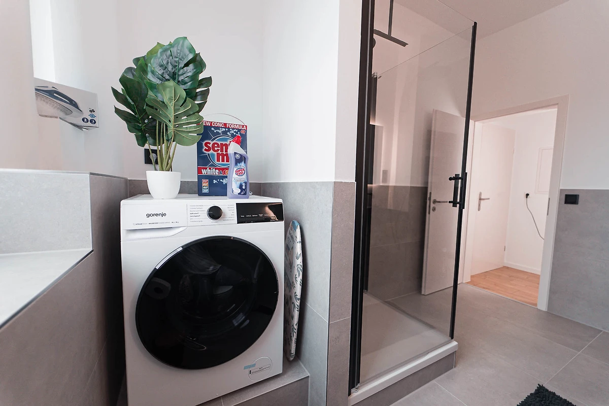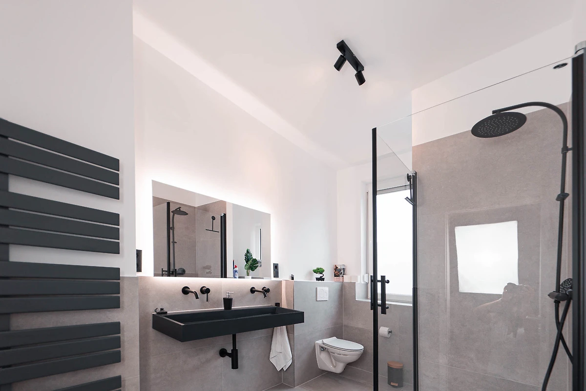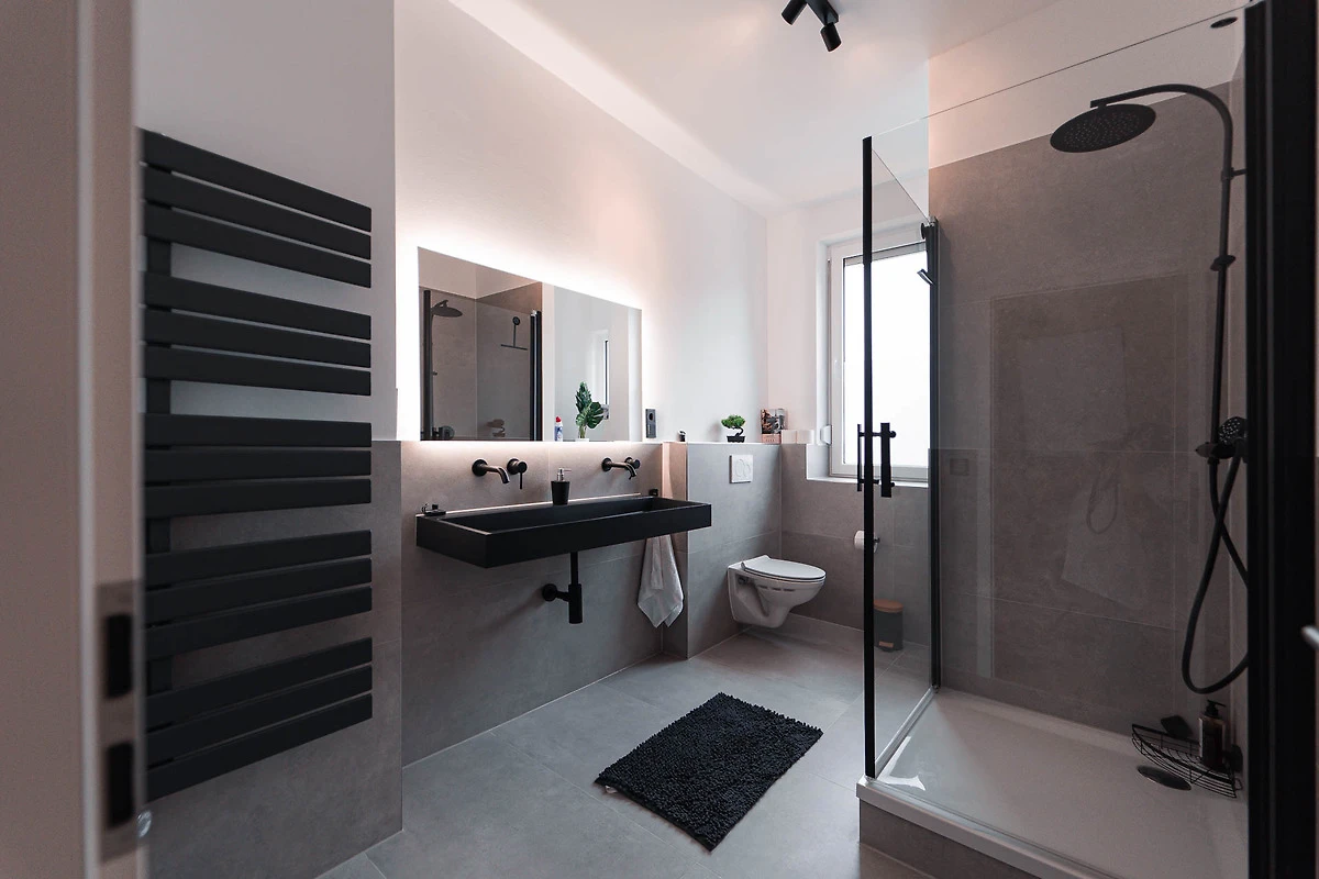 - tageslichtdurchflutetes Badezimmer mit Dusche