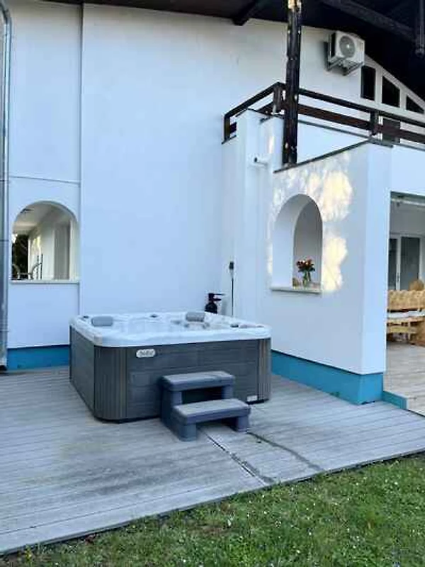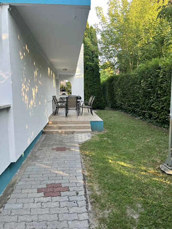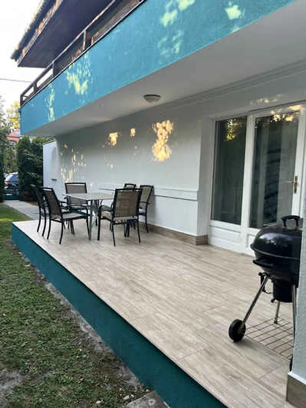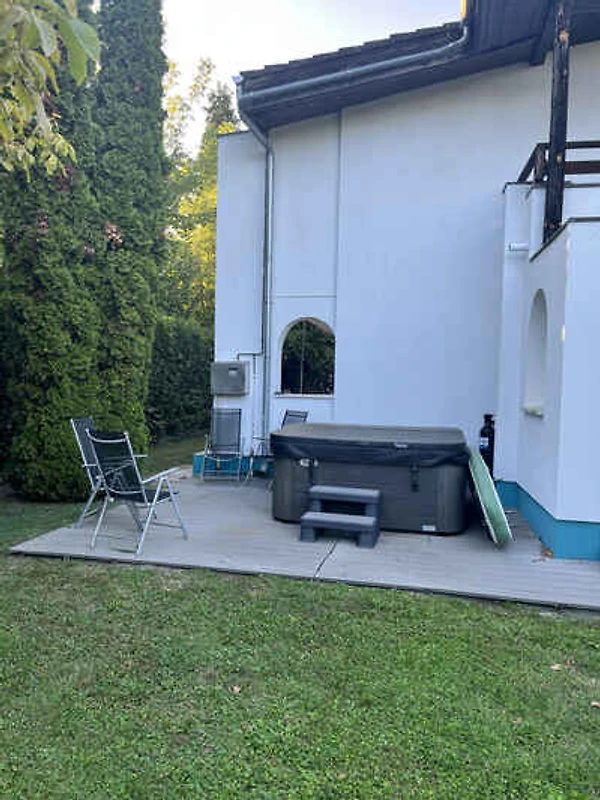 Balatonboglár. Das Ferienhaus befindet sich auf einem 300 qm grossen, geschlossenen Gartengrundstück mit Wiese, Blumen, Sträuchern und Bäumen, von einem Zaun begrenzt. Der Vermieter wohnt nur zeitweise in einem separaten Gebäude auf dem Grundstück. Die Zufahrt erfolgt über eine Nebenstrasse (asphaltiert). Parkplatz (für 2 Pkws) auf dem Grundstück. Eine Ladestation für E-Autos gibt es auf dem Grundstück.
