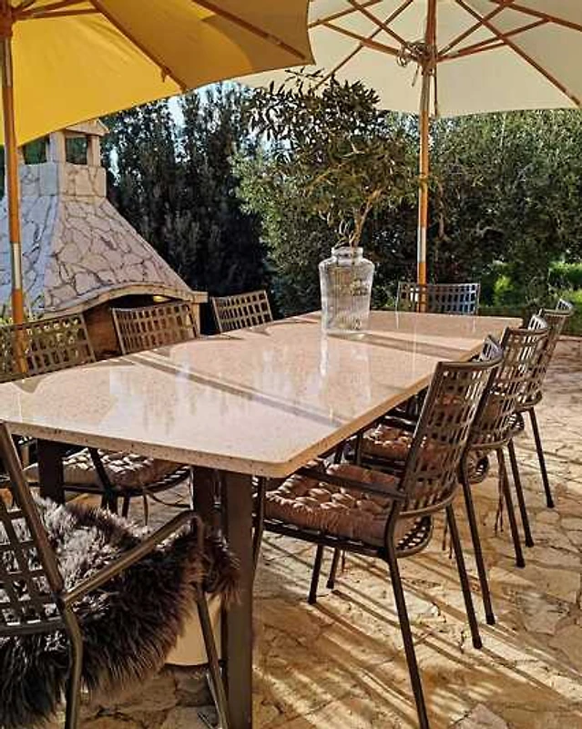 Für Erfrischung an heißen Tagen sorgt der private Swimmingpool. Auf der Terrasse können Sie gemütliche Grillabende mit dem vorhandenen BBQ-Grill verbringen. Ein Parkplatz auf dem Grundstück bietet zusätzlichen Komfort.