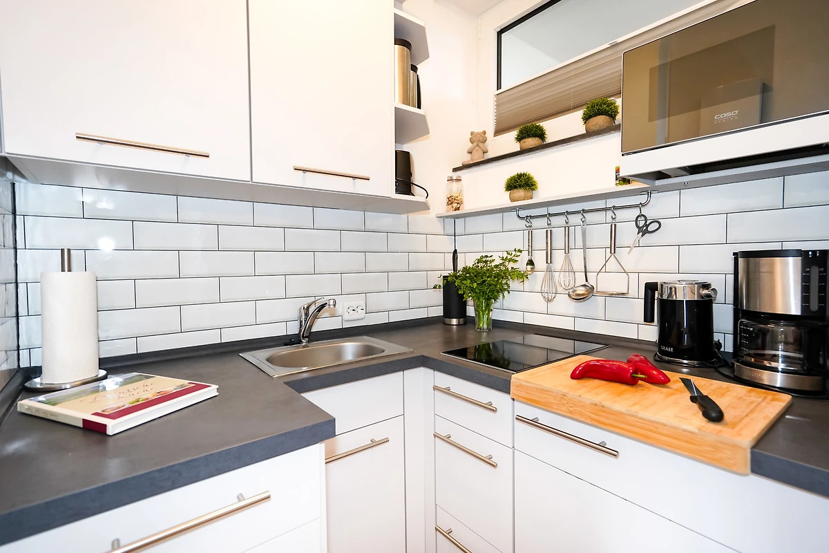 Die separate Küche bietet Ihnen alles für den täglichen Kochspass. Ausgestattet mit Spülmaschine, Kühlschrank mit Gefrierfach und Mikrowelle mit Backfunktion und weiteren Elektro-Kleingeräten, bleibt hier kein Wunsch offen.