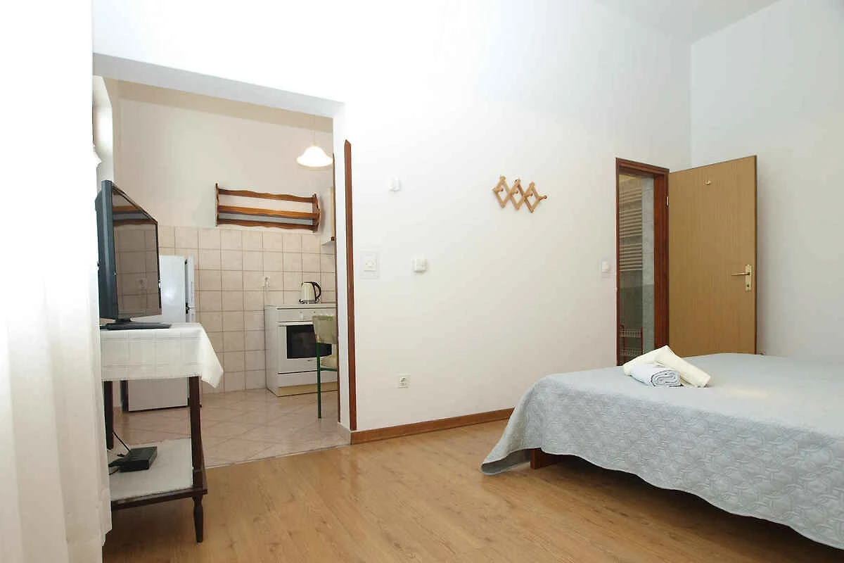 Pula. Die Ferienwohnung befindet sich auf einem 22 qm grossen Grundstück. Der Vermieter wohnt im Haus. Die Ferienwohnung enthält eine Ferienwohnung (ISTPRE638), ein Appartement (ISTPRE637) und ein Studio-Appartement. Diese Anzeige bezieht sich nur auf das Studio-Appartement für 2 Personen. Es kann vorkommen, dass Sie sich mit anderen Gästen in dem gleichen Haus aufenthalten werden, aber Sie werden über eine eigene Küche bzw. ein eigenes Bad verfügen. Die Zufahrt erfolgt über eine Nebenstrasse. Parkplatz (für 1 Pkw) auf dem Grundstück.