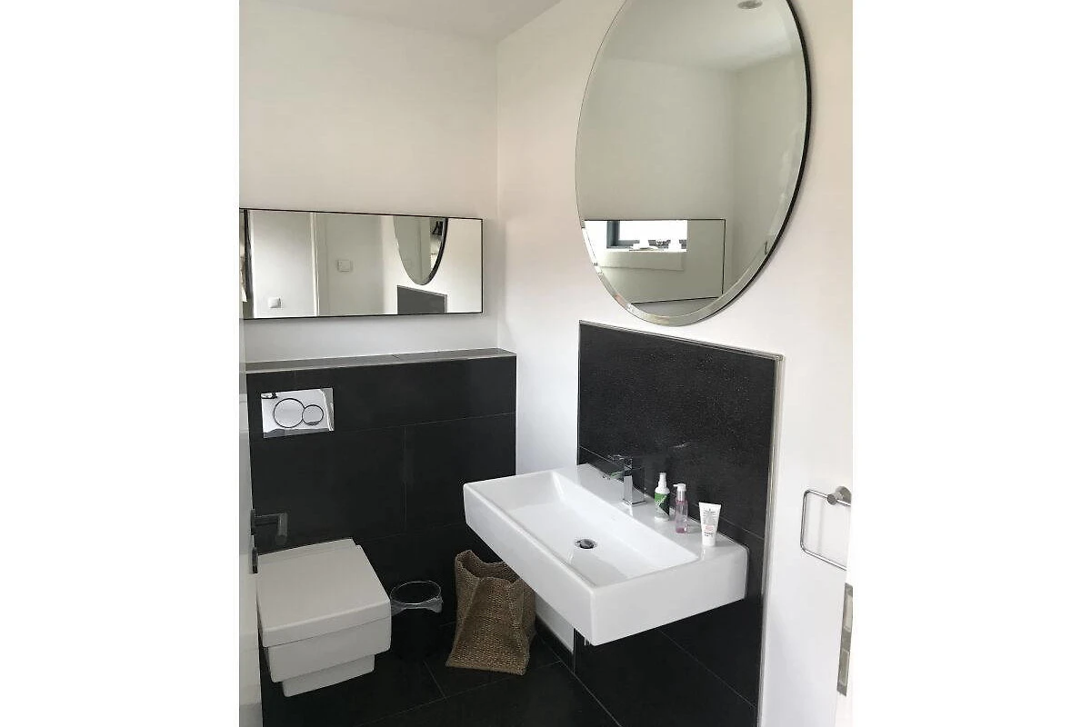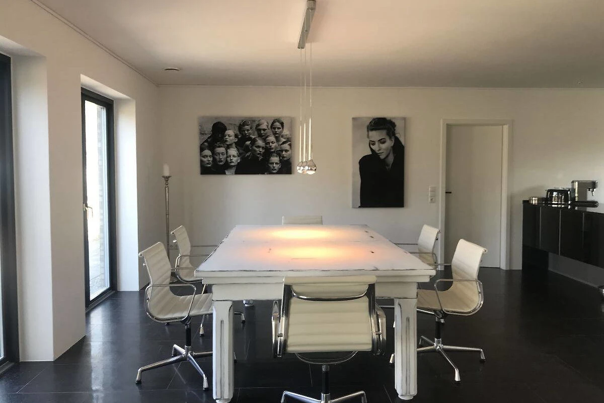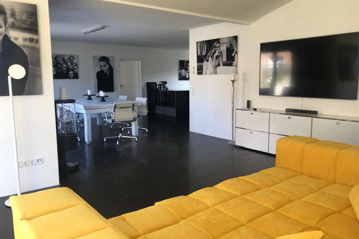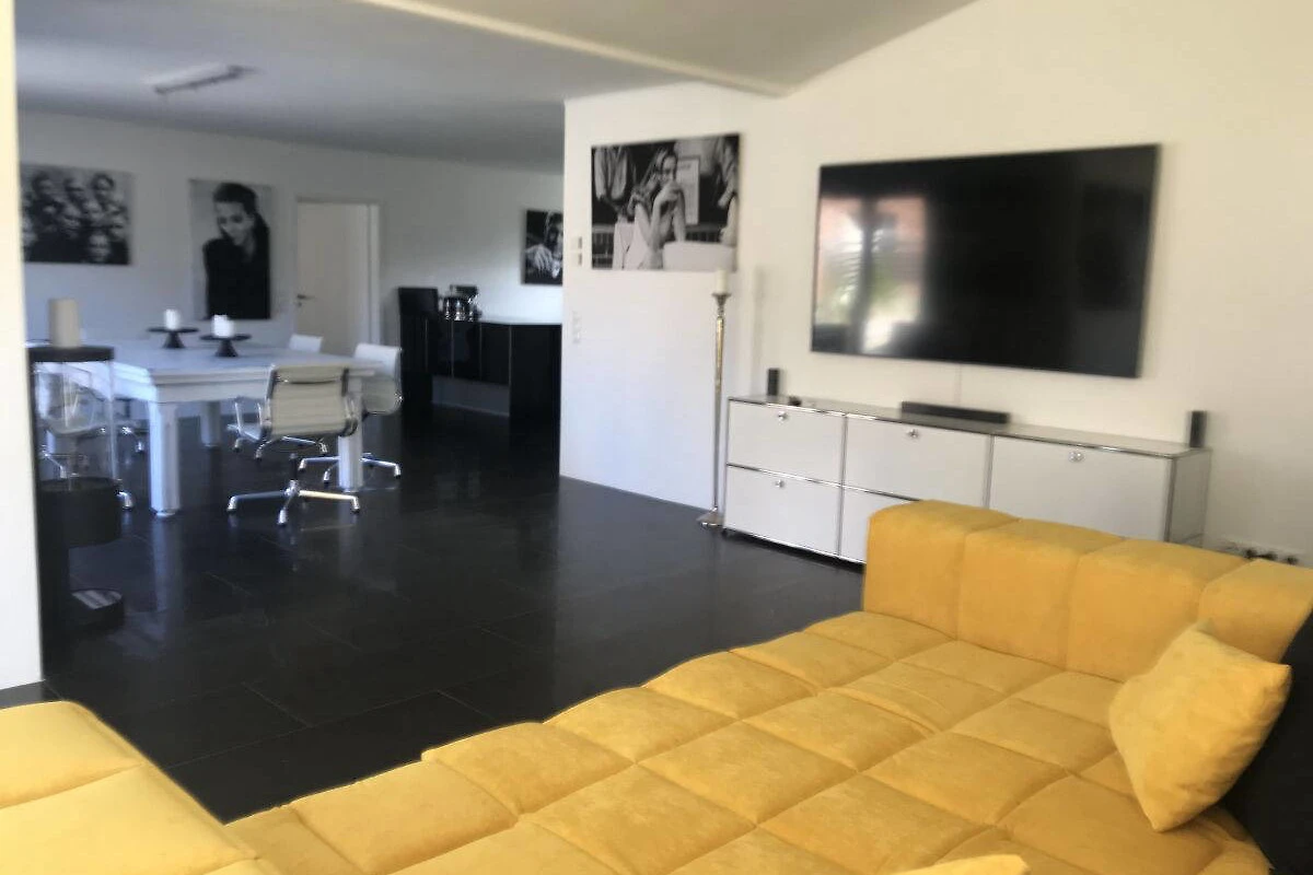 Schwarze Fussböden mit Fussboden-Heizung, im Kontrast zu weissen glatten Wänden – das ist die HOOK-LINE. Eine Luxus-Küche vom Feinsten, Bäder zum Niederknien, 4 Doppel-Schlafzimmer, ein Esstisch mit Eames-Stühlen, an dem man auch Billard spielen kann, dazu ein XXL-Big-Sofa, massieren die Sinne, wie die BASS-LINE in Ihrem Lieblingssong.
