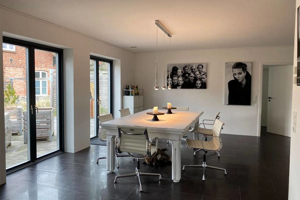 Ein Neubau im skandinavischen Stil auf einer Ebene – mitten in Tating-Dorf, dazu eine Sand-Düne mit Strandhafer – diese Kombination aus dänischem Charme und modernem Design, macht das Objekt einfach nur HYGGE.