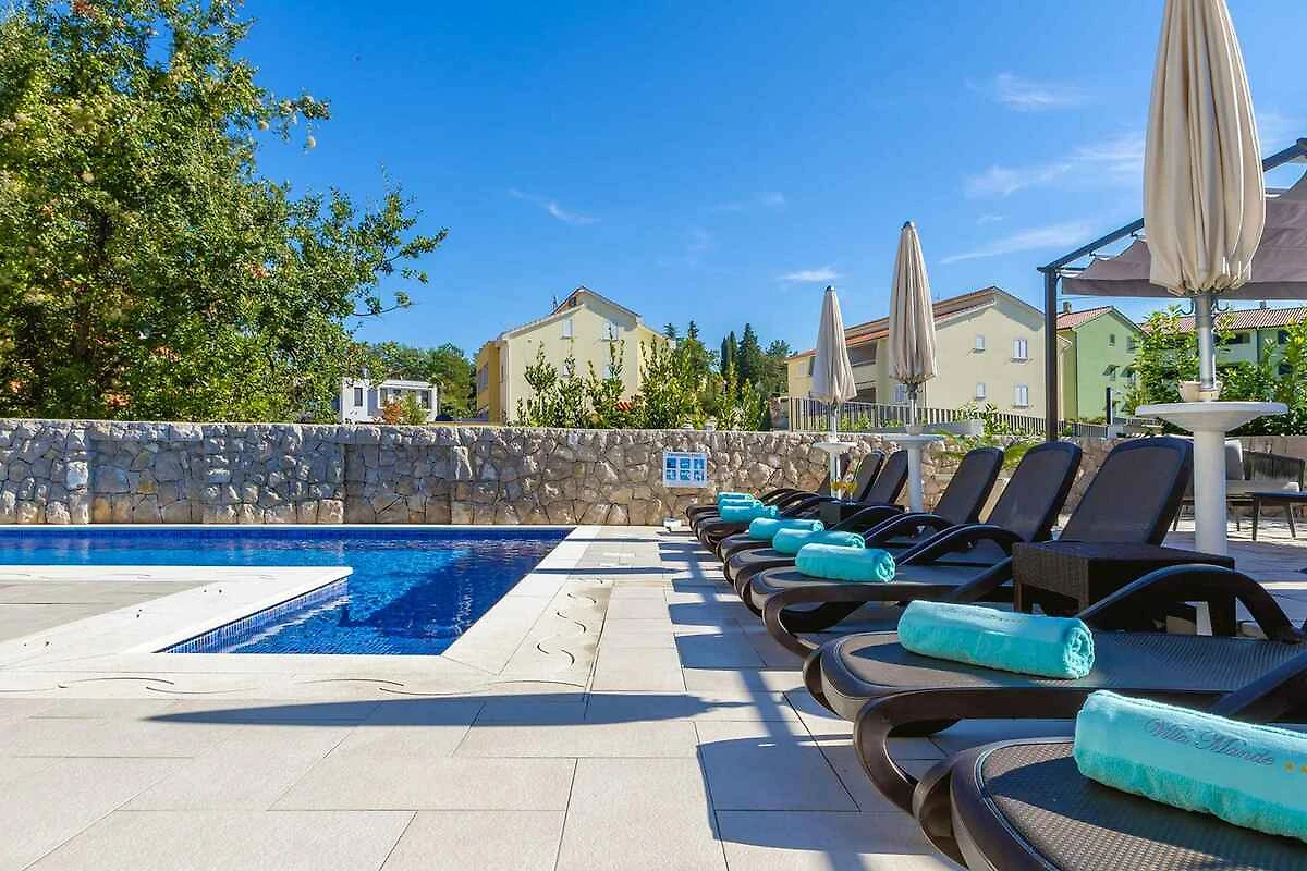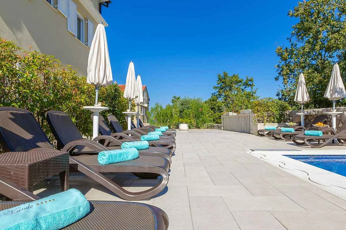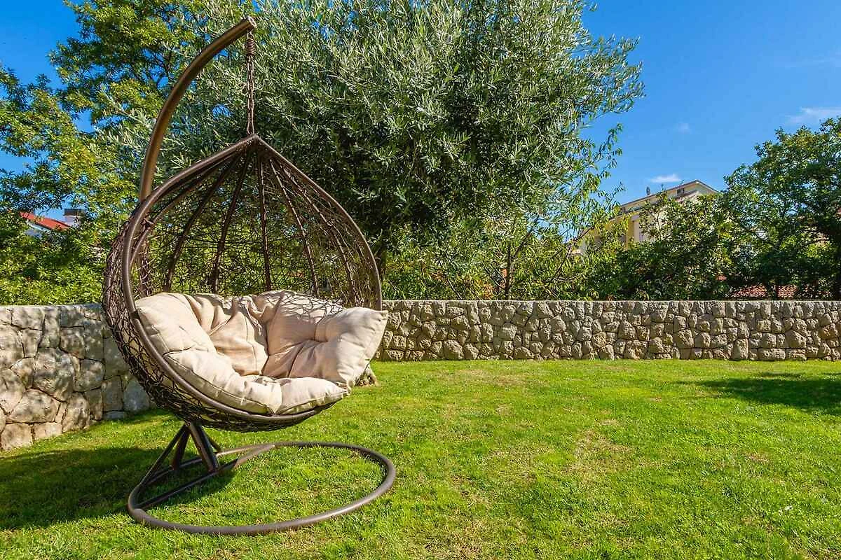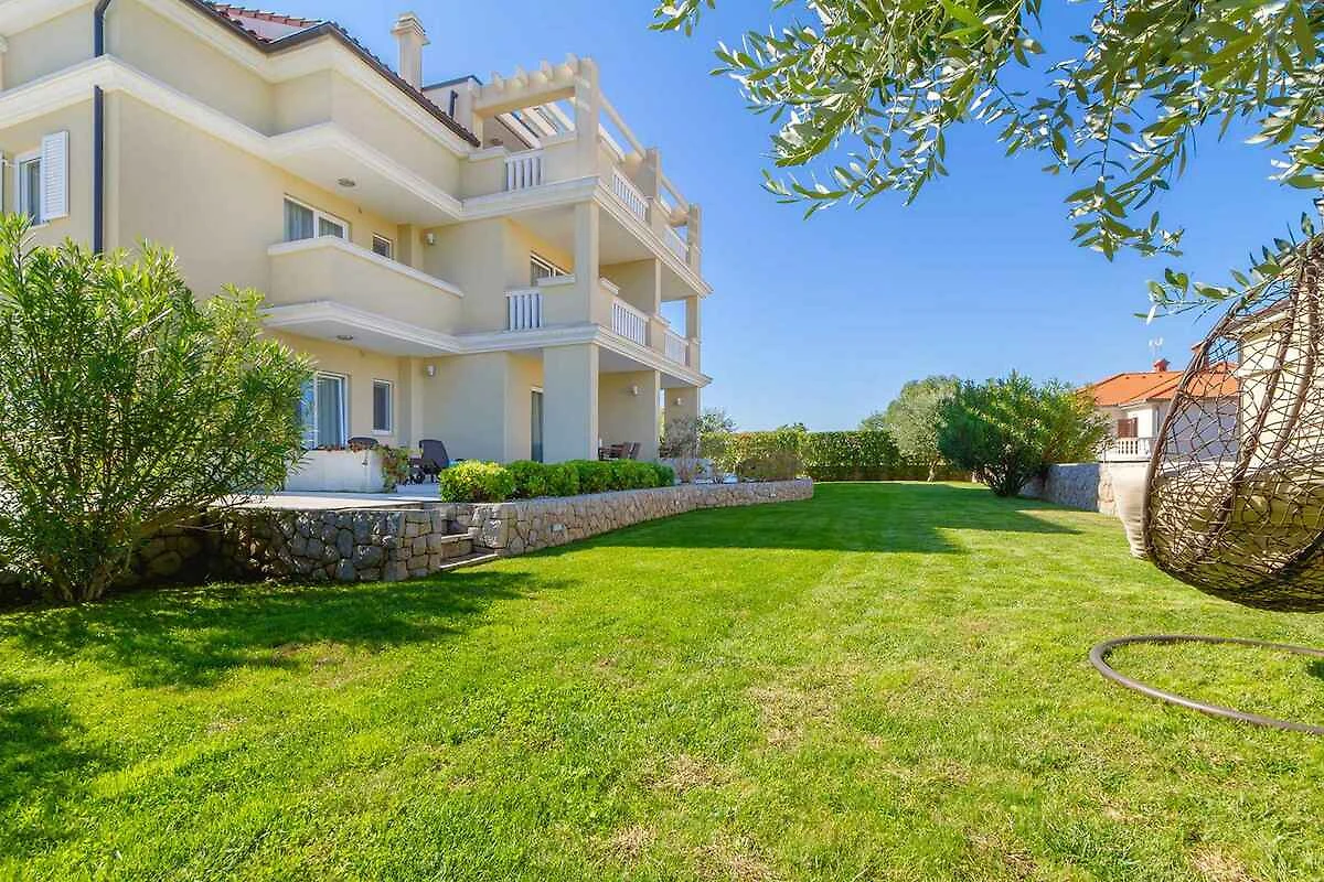 Malinska. Die Ferienwohnung befindet sich auf einem geschlossenen Gartengrundstück mit Blumen und Bäumen, von einem Zaun begrenzt. Die Zufahrt erfolgt über einen Weg (asphaltiert). Parkplatz auf dem Grundstück.