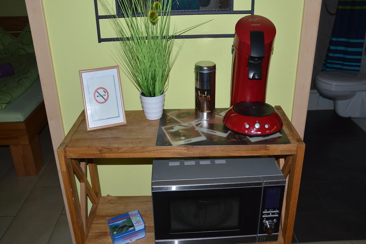 In der gut ausgestatteten Kochnische mit Herd, Wasserkocher, Toaster und Kaffeemaschine können Sie sich Ihre Mahlzeiten selbst zubereiten. Zahlreiche Einkaufsmöglichkeiten befinden sich in unmittelbarer Nähe.