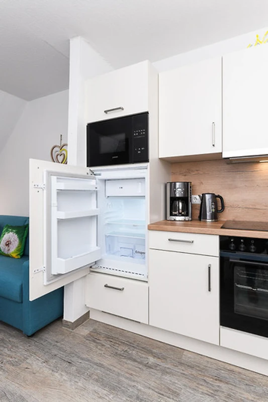 Richtige Urlaubsstimmung kommt auf der schönen Terrasse der Ferienwohnung auf. In der Unterkunft finden Sie neben einem Kühlschrank auch eine Mikrowelle und eine Kaffeemaschine.