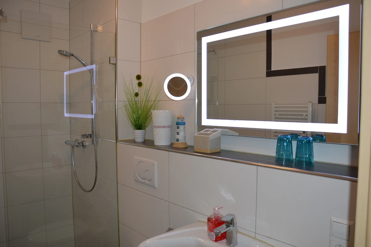 Nach einem aufregenden Tag können Sie im Wohnzimmer in der gemütlichen Couchecke richtig entspannen. Ein Flachbildschirm verspricht ruhige Fernsehabende in schöner Atmosphäre. WLAN ist in der Ferienwohnung vorhanden. Den WLAN-Code erhalten Sie auf Nachfrage.