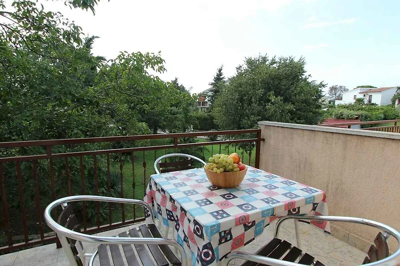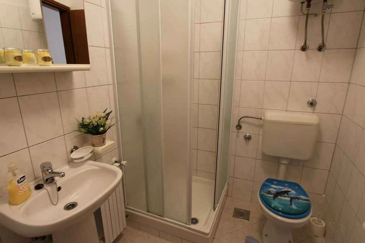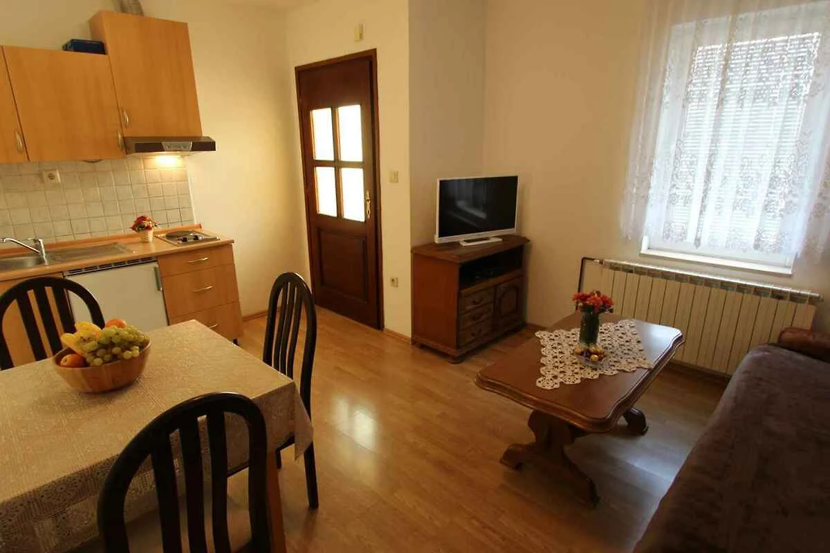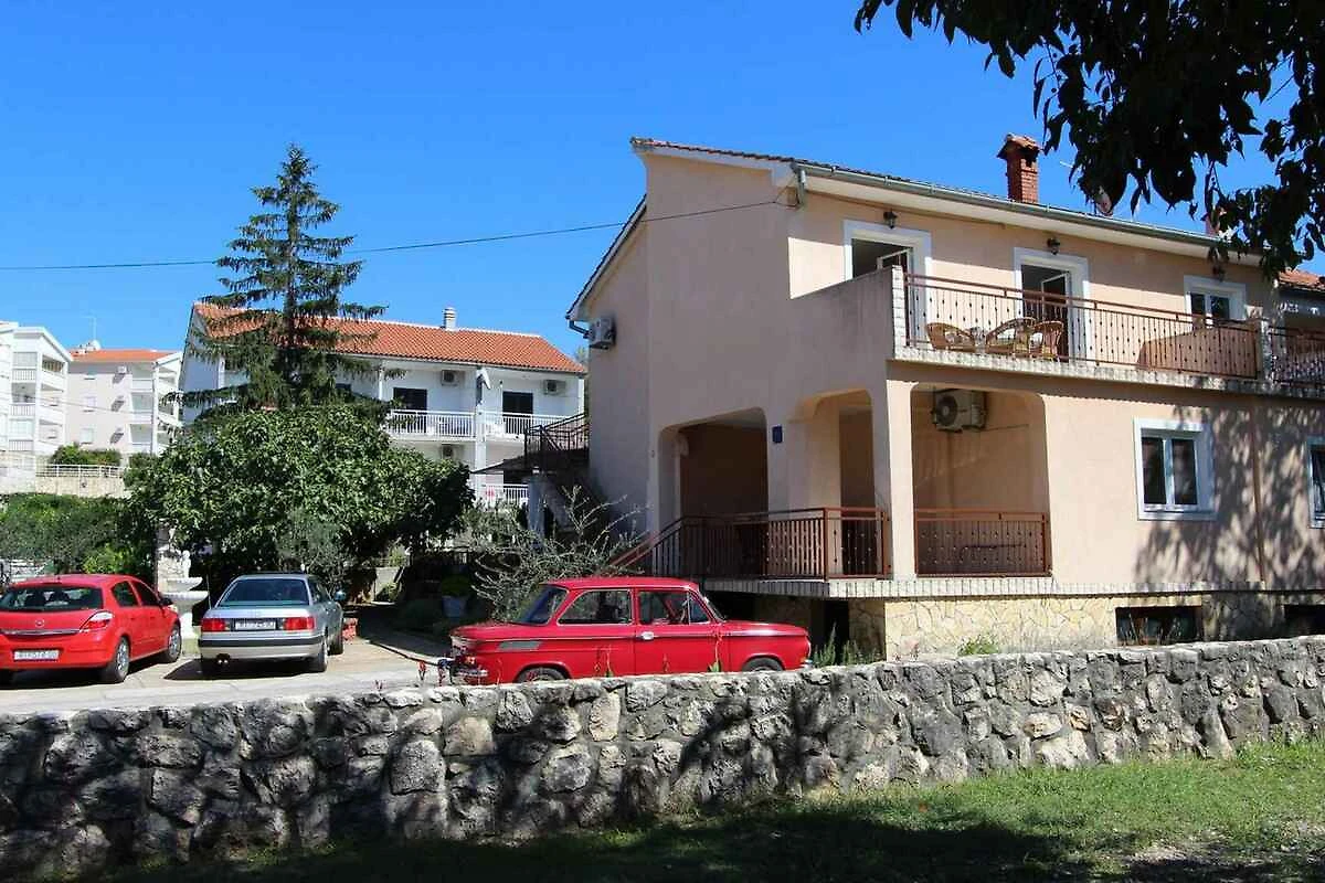 Malinska. Die Ferienwohnung befindet sich auf einem Gartengrundstück. Parkplatz auf dem Grundstück.